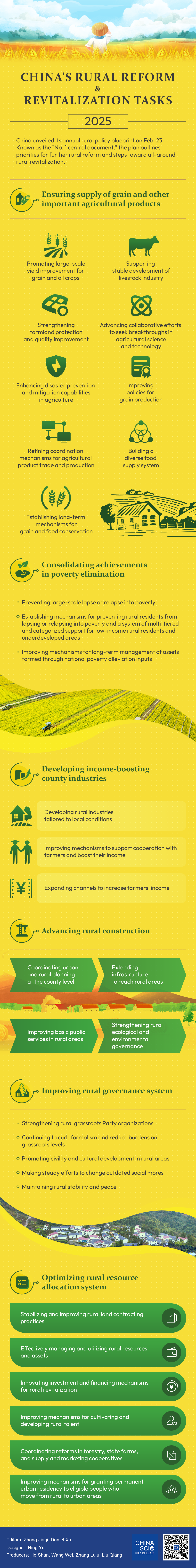China unveiled its annual rural policy blueprint on Sunday. Known as the "No. 1 central document," the plan outlines priorities for further rural reform and steps toward all-around rural revitalization.