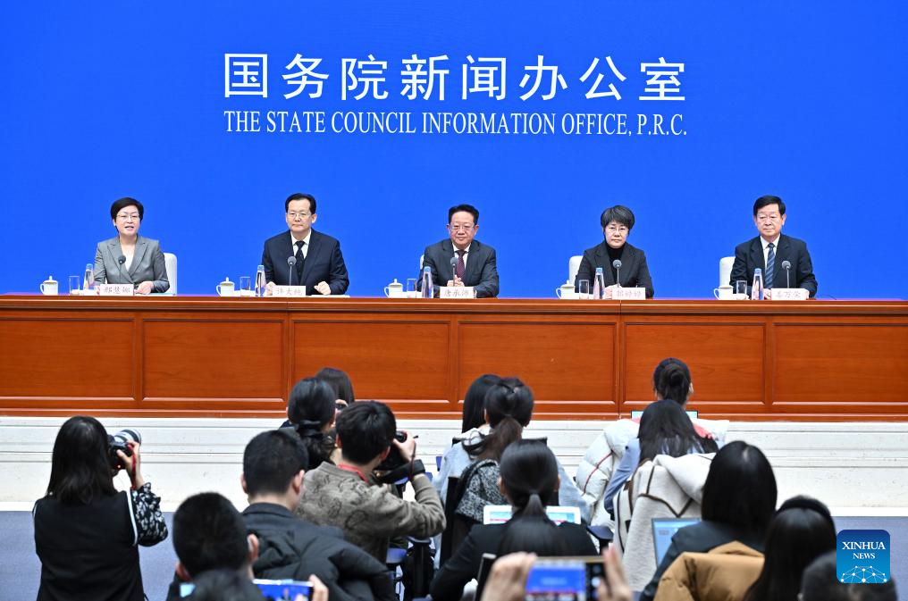 The State Council Information Office holds a press conference on handling suggestions from deputies to the National People's Congress and proposals of the National Committee of the Chinese People's Political Consultative Conference in 2024, in Beijing, capital of China, Feb. 28, 2025. (Xinhua/Li Xin)