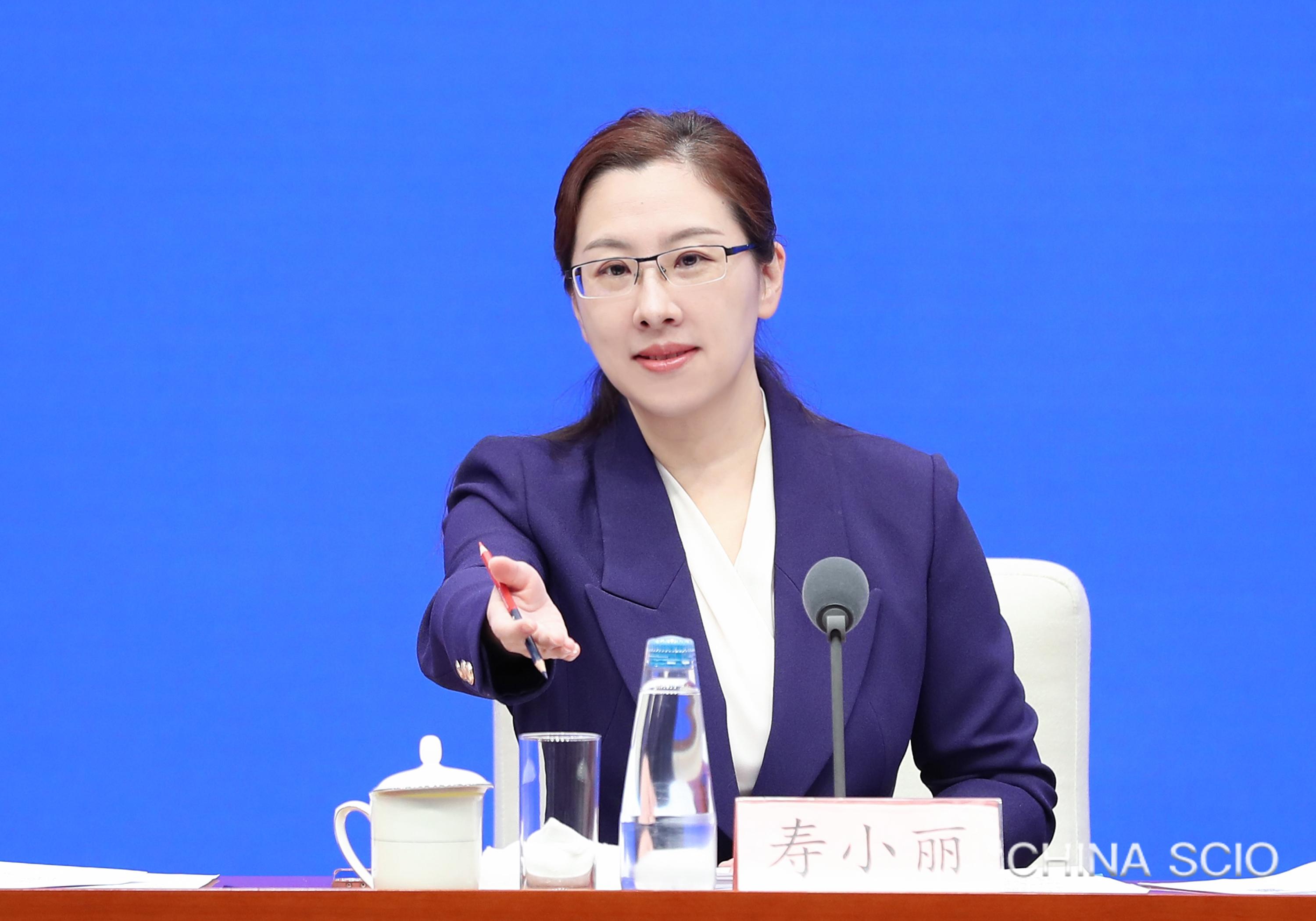 Shou Xiaoli, director general of the Press Bureau of the State Council Information Office (SCIO) and spokesperson of the SCIO, invites journalists to raise questions at a press conference in Beijing, March 17, 2025. [Photo by Luan Haijun/China SCIO]