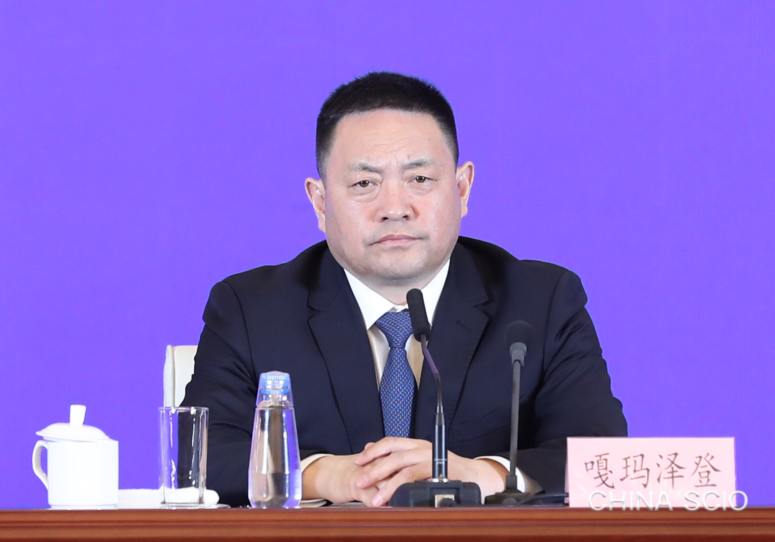 Gama Cedain, deputy secretary of the Communist Party of China (CPC) Xizang Autonomous Regional Committee and chairman of the People's Government of the Xizang Autonomous Region, attends a press conference in Lhasa, capital city of the region, March 28, 2025. [Photo by Xu Xiang/China SCIO]