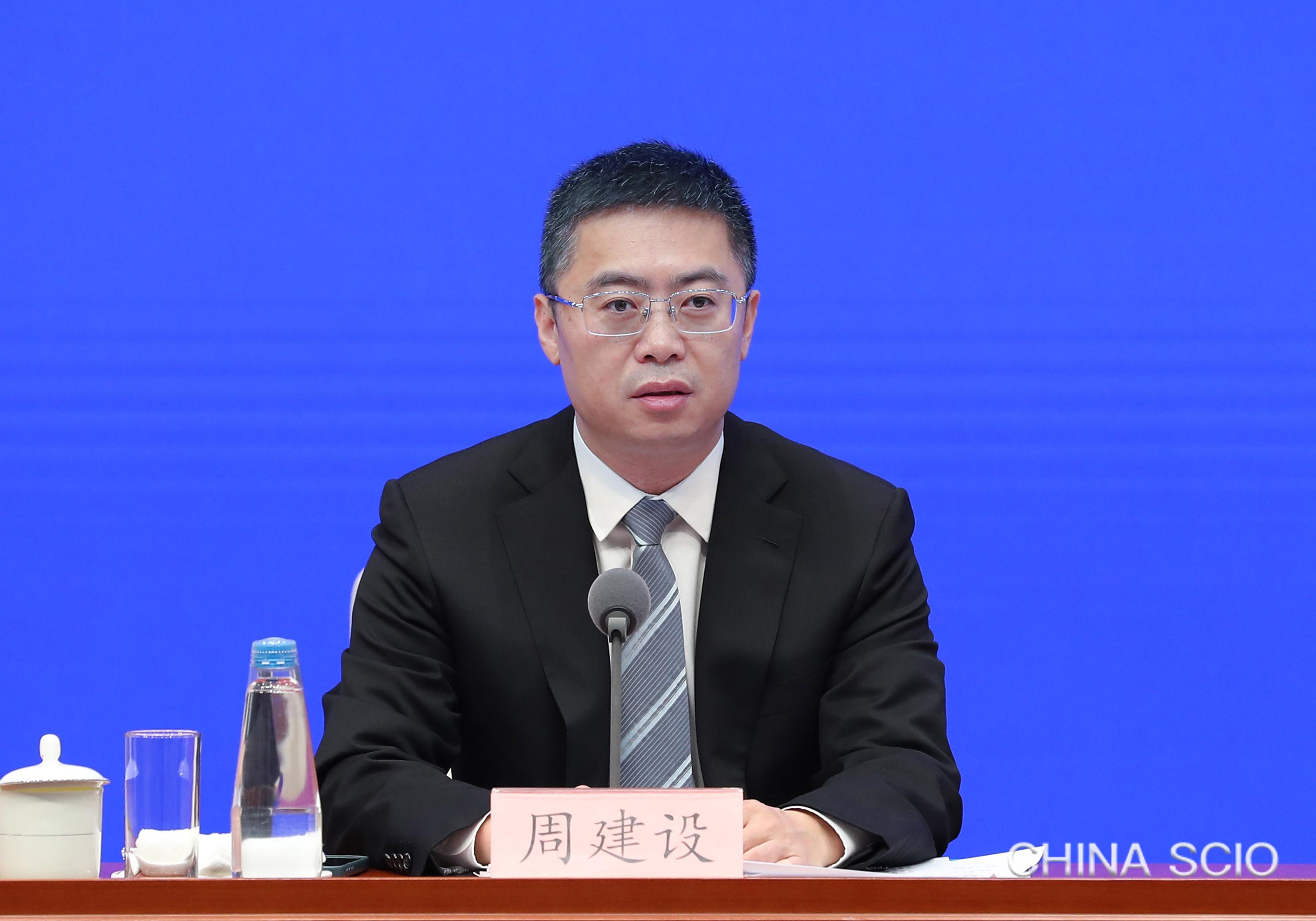 Zhou Jianshe, deputy director general of the Press Bureau of the State Council Information Office (SCIO) and spokesperson of the SCIO, chairs a press conference in Beijing, April 18, 2025. [Photo by Luan Haijun/China SCIO]