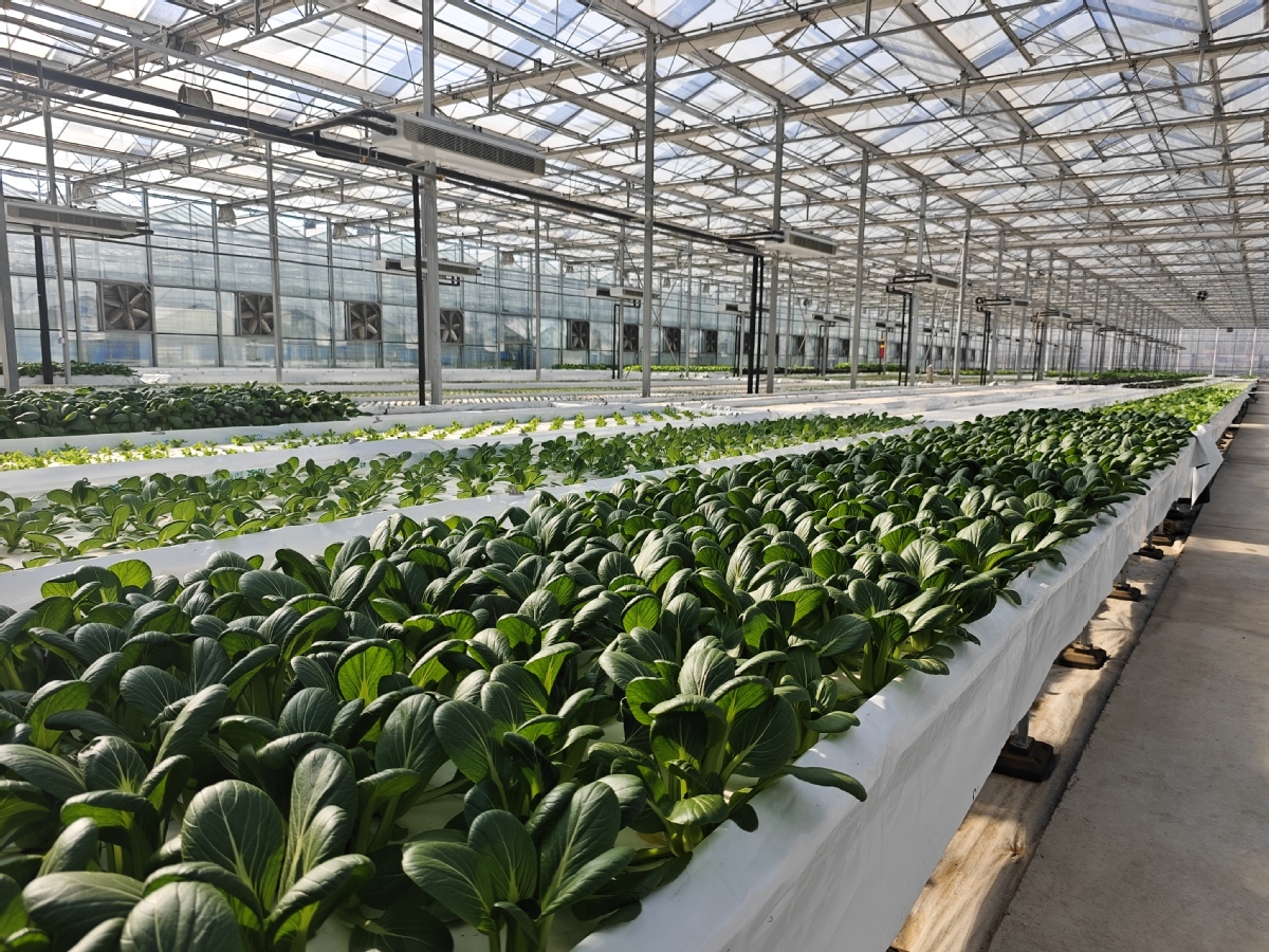 This undated photo shows vegetables growing in greenhouses equipped with hydroponic technology in Shandong province. [Photo/Xinhua]