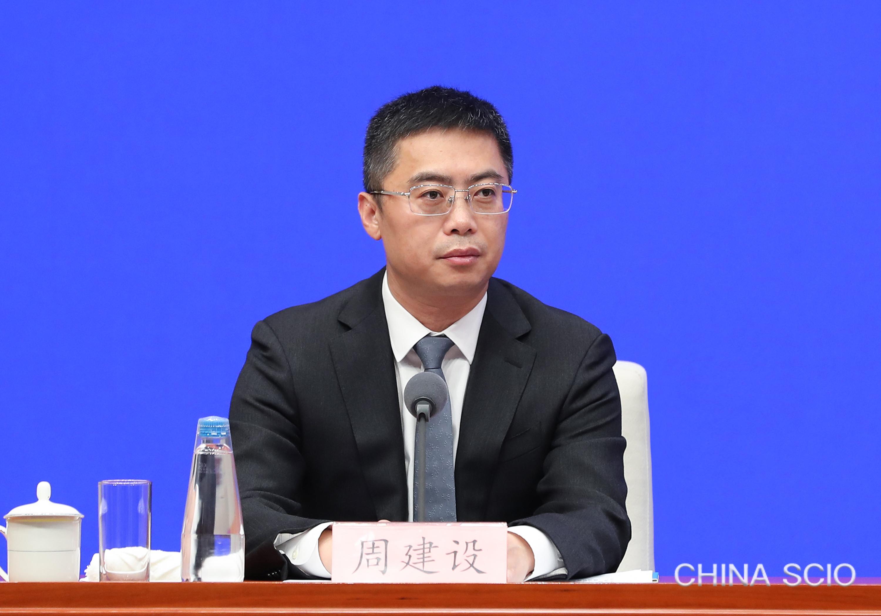 Zhou Jianshe, deputy director general of the Press Bureau of the State Council Information Office (SCIO) and spokesperson of the SCIO, chairs a press conference in Beijing, April 21, 2025. [Photo by Luan Haijun/China SCIO]