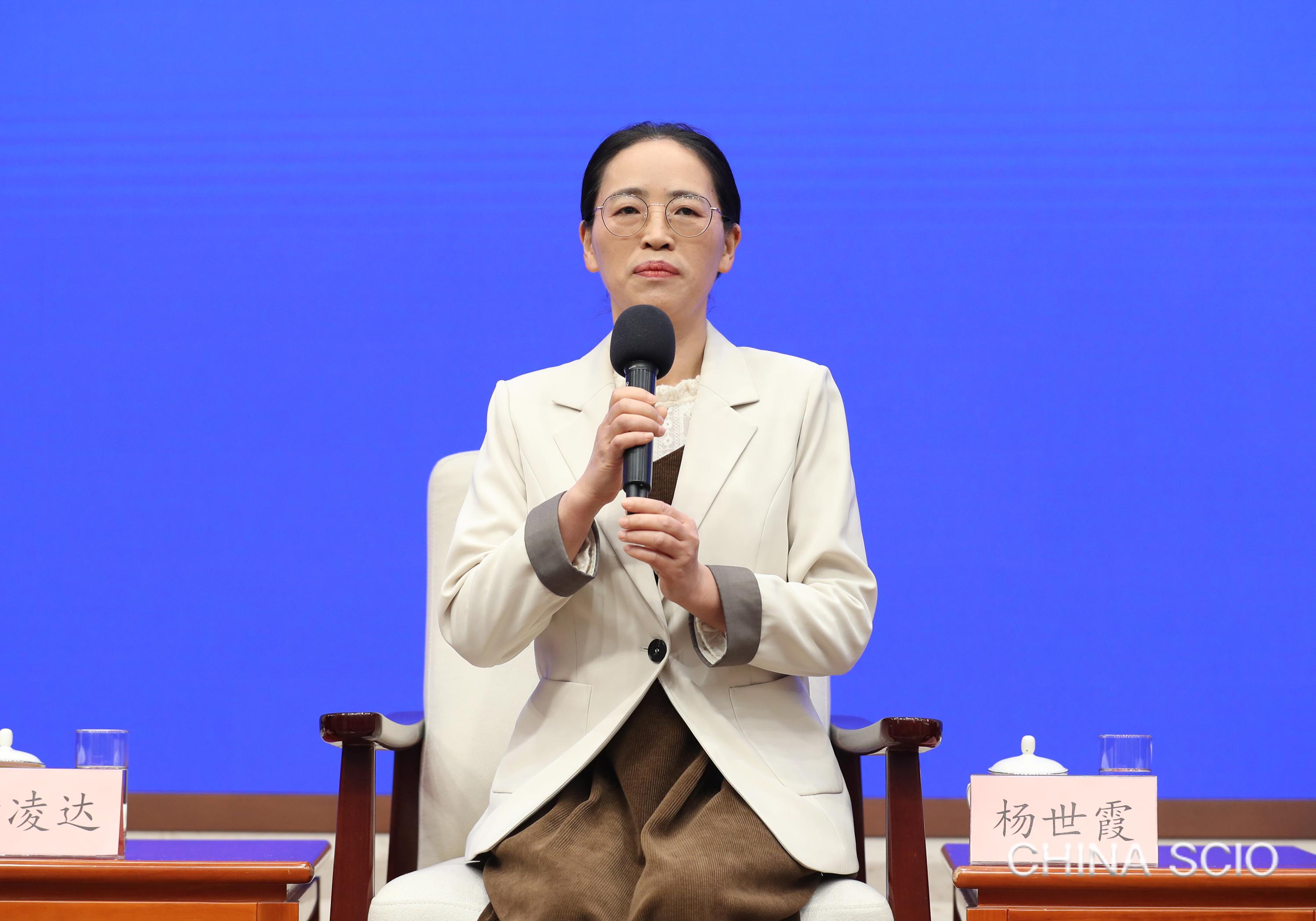 Yang Shixia, a doctor at Baiyangping village clinic, Bibo town, Kaili city, Qiandongnan Miao and Dong autonomous prefecture, Guizhou province, attends a group interview in Beijing, April 22, 2025. [Photo by Xu Xiang/China SCIO]