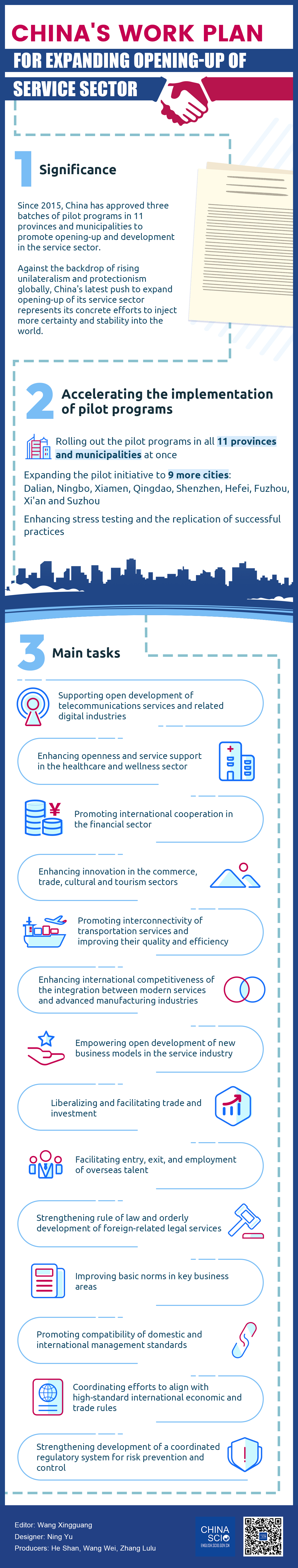 China recently unveiled a work plan to accelerate the opening-up of the service sector, a concrete move aimed at bringing greater certainty and stability to the global economy. Key sectors such as telecommunications and healthcare are now more open to foreign participation.