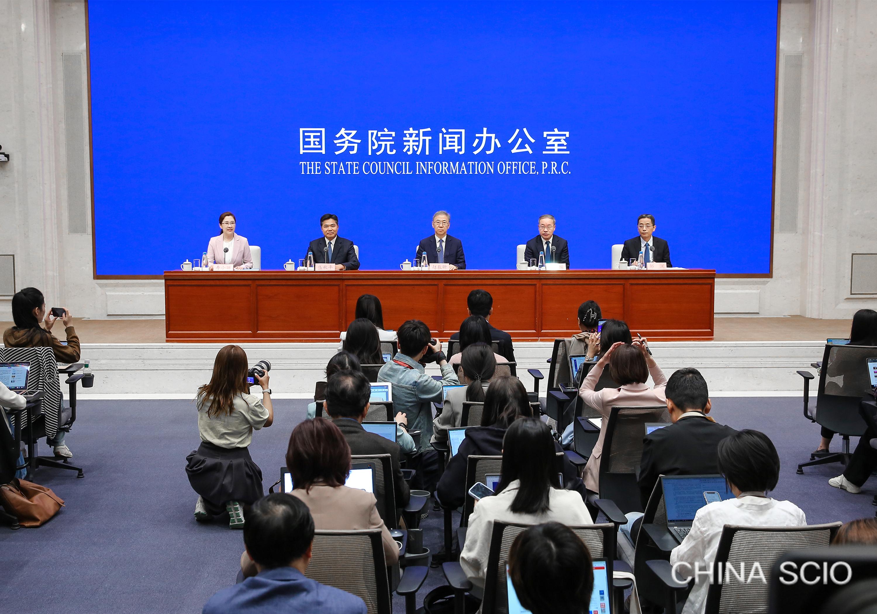 On April 28, 2025, the State Council Information Office holds a press conference in Beijing about policies and measures on stabilizing employment, ensuring stable growth and promoting high-quality development. [Photo by Liu Jian/China SCIO]