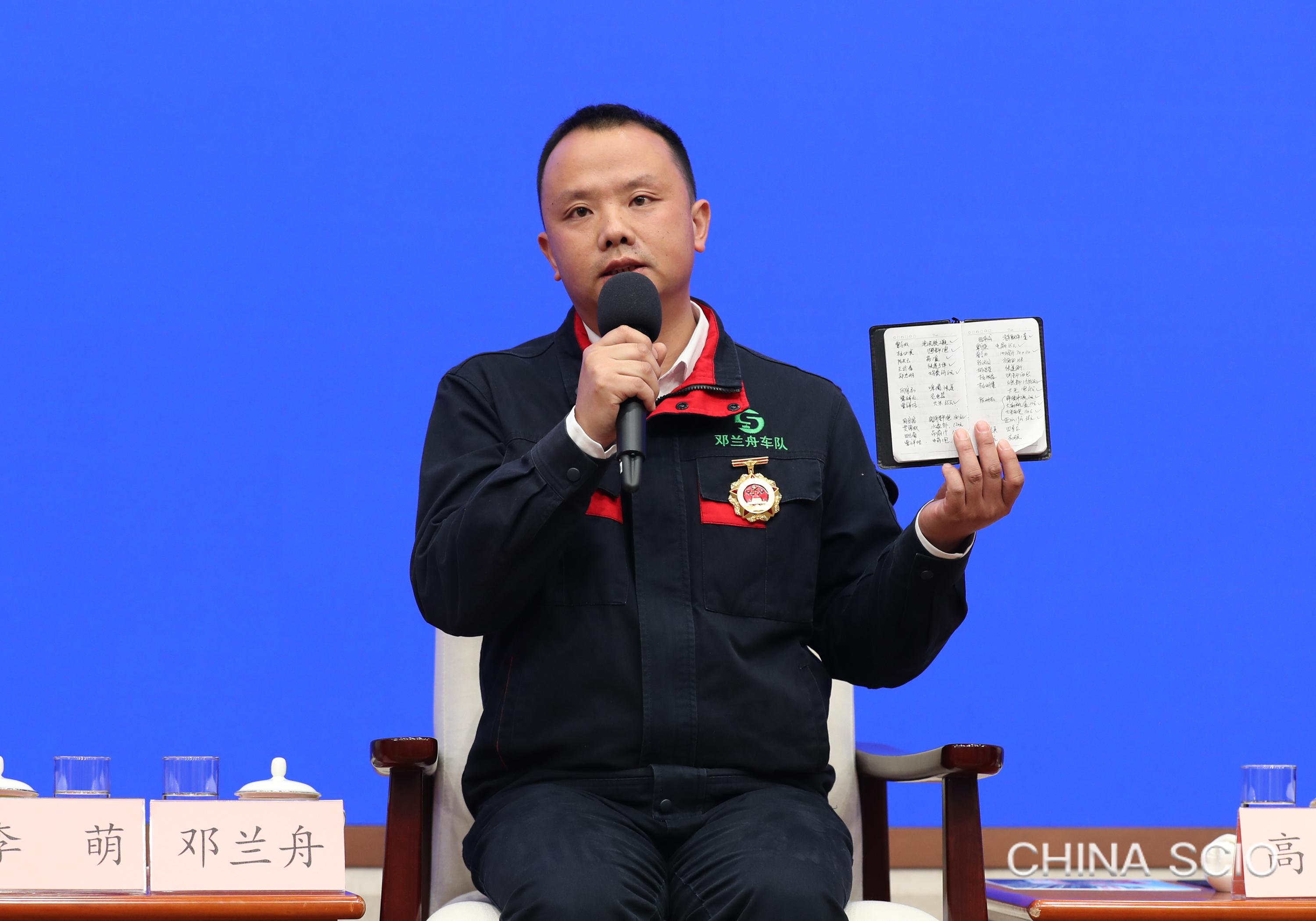 Deng Lanzhou, a driver of Hubei Wufeng Sannong Passenger Transport Co. Ltd., attends a group interview in Beijing, April 29, 2025. [Photo by Xu Xiang/China SCIO]