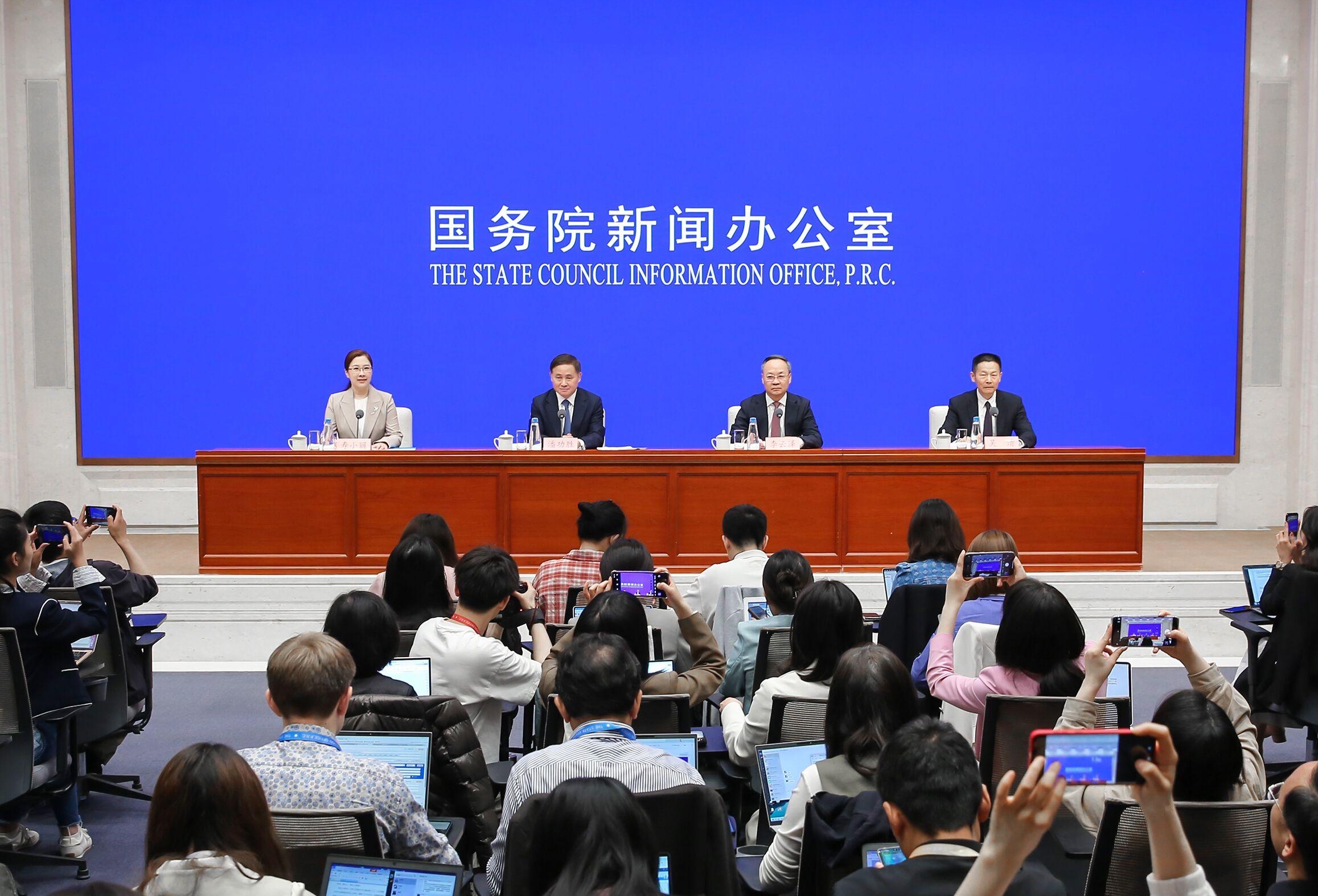 On May 7, 2025, the State Council Information Office holds a press conference in Beijing about the financial policy package to stabilize the market and expectations. [Photo by Liu Jian/China SCIO]