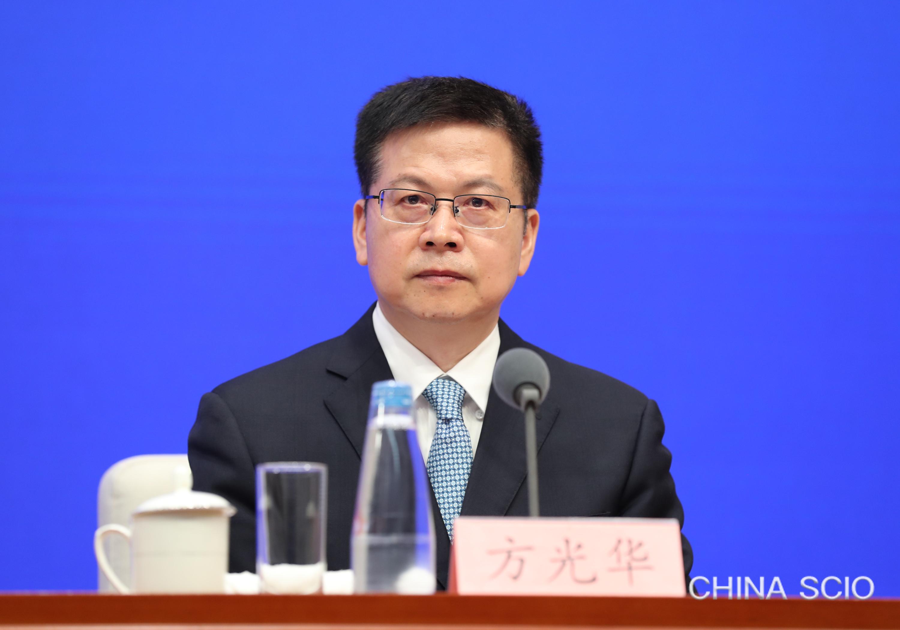 Fang Guanghua, vice chairman of the All-China Federation of Industry and Commerce, attends a press conference in Beijing, May 8, 2025. [Photo by Xu Xiang/China SCIO]