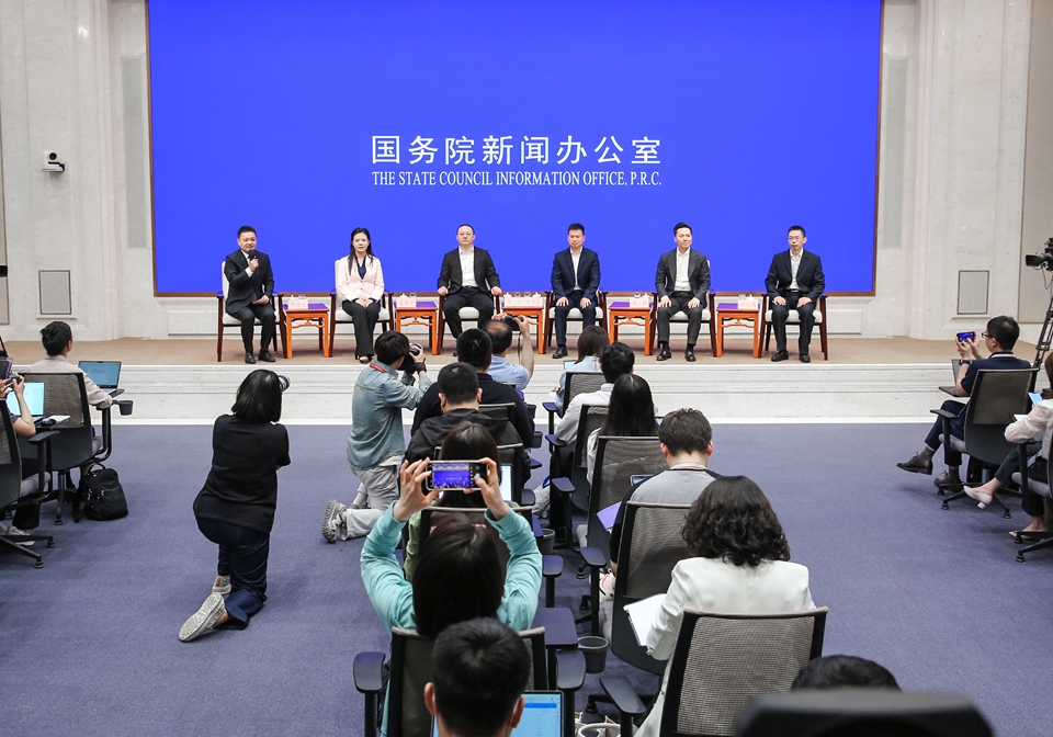 On May 13, 2025, the State Council Information Office invites five representatives from the industrial and information technology sector to meet journalists and answer questions in Beijing. [Photo by Liu Jian/China SCIO]