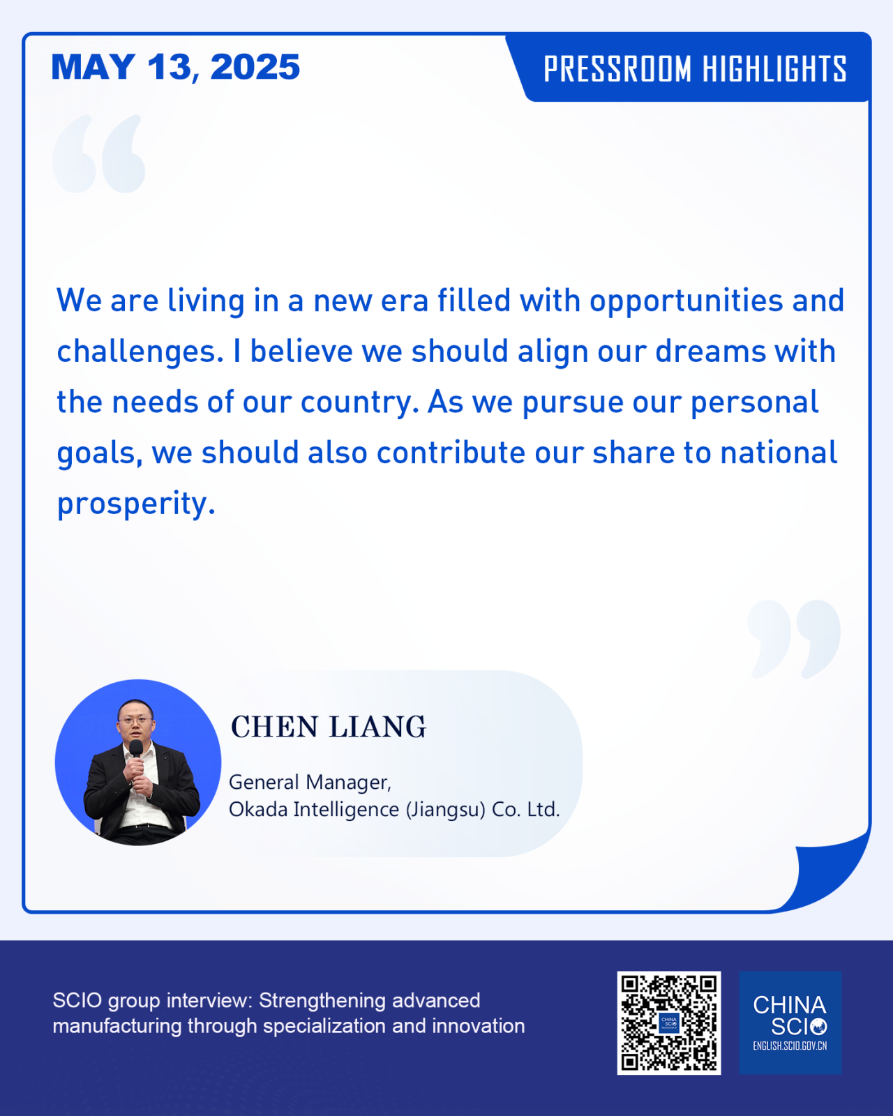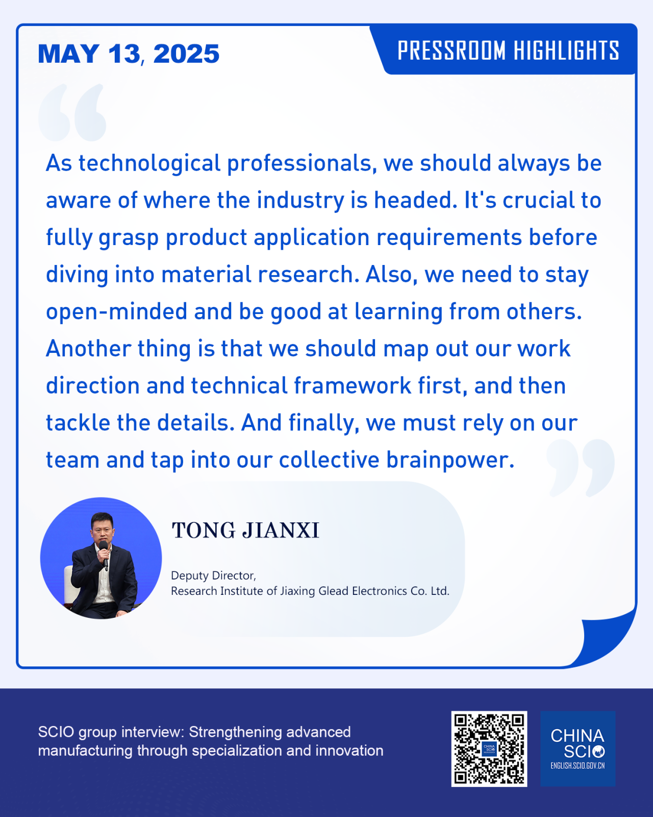The State Council Information Office held a group interview Tuesday in Beijing on strengthening advanced manufacturing through specialization and innovation. Five representatives from the industrial and information technology sector shared their stories at the event.