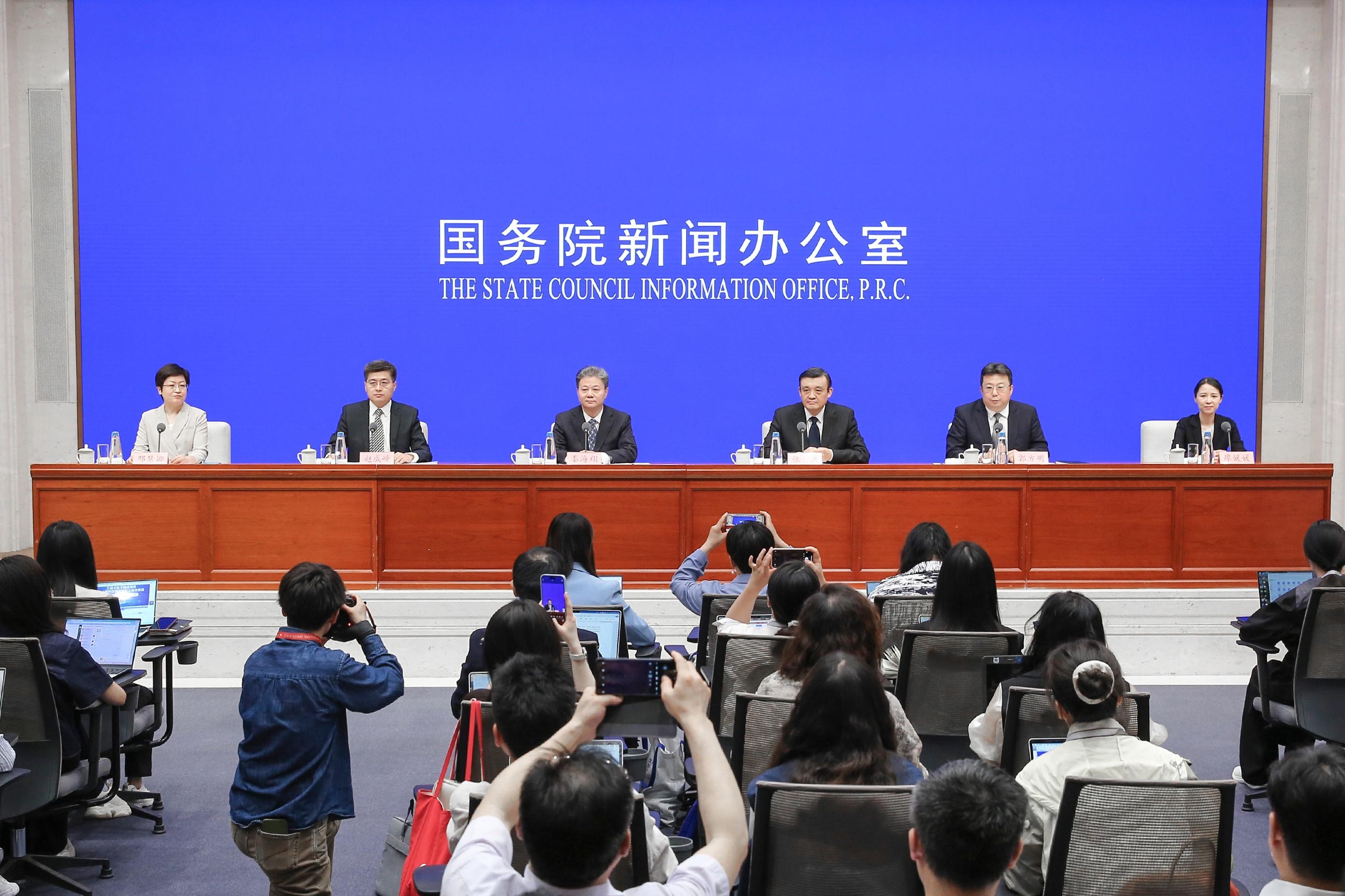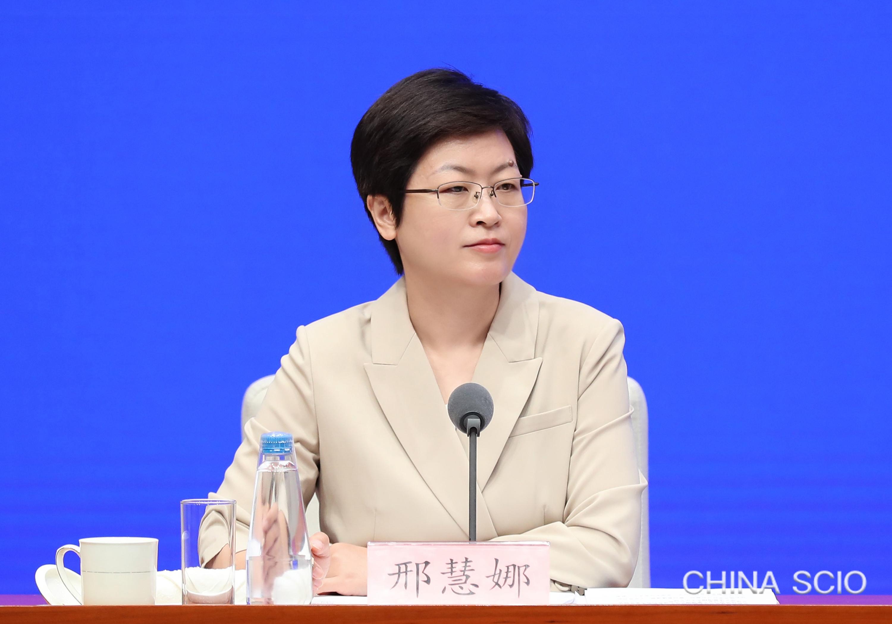 Xing Huina, deputy director general of the Press Bureau of the State Council Information Office (SCIO) and spokesperson of the SCIO, chairs a press conference in Beijing, May 20, 2025. [Photo by Luan Haijun/China SCIO]