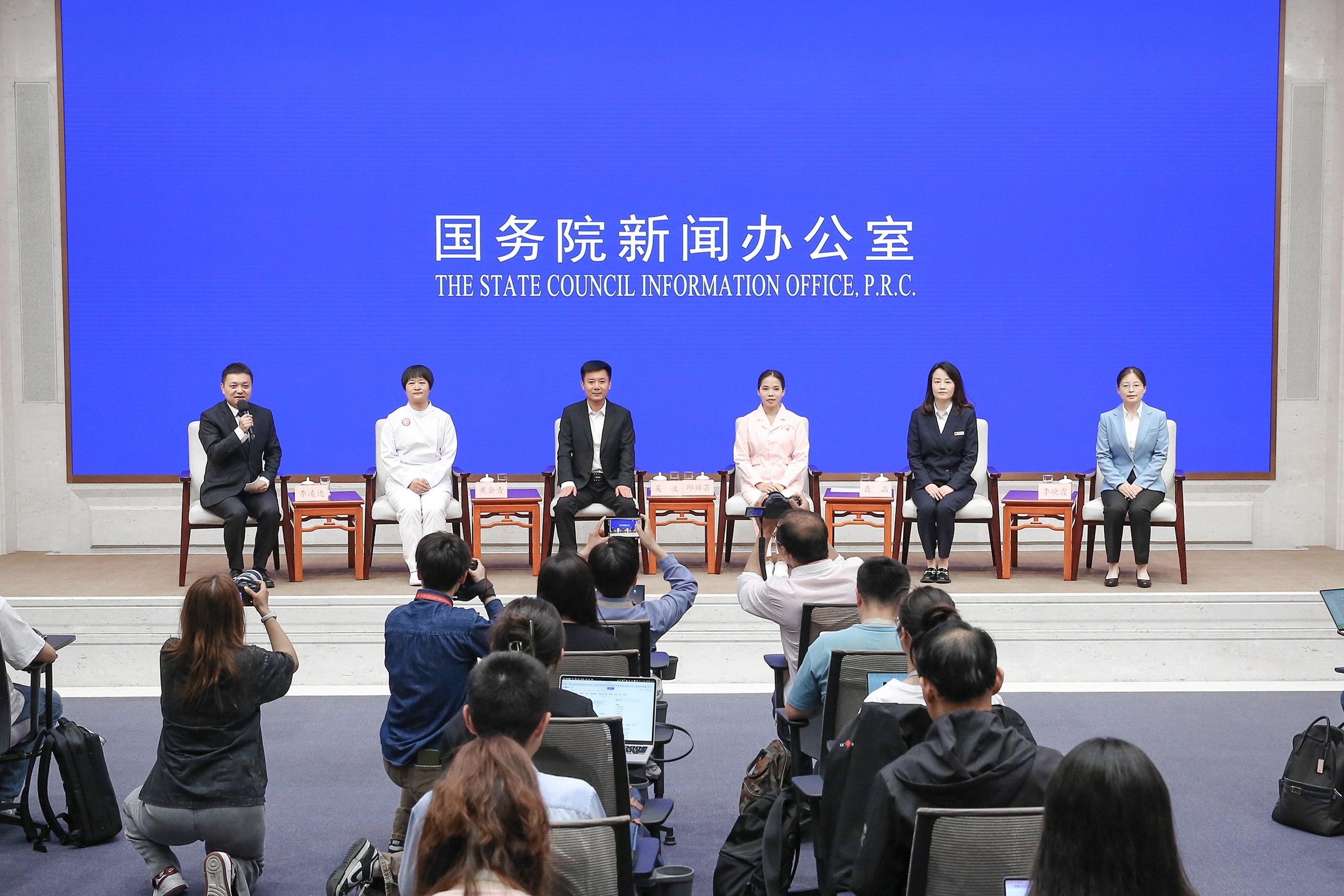 On May 20, 2025, the State Council Information Office invites five representatives from the civil affairs system to meet journalists and answer questions in Beijing. [Photo by Zhao Yifan/China SCIO]