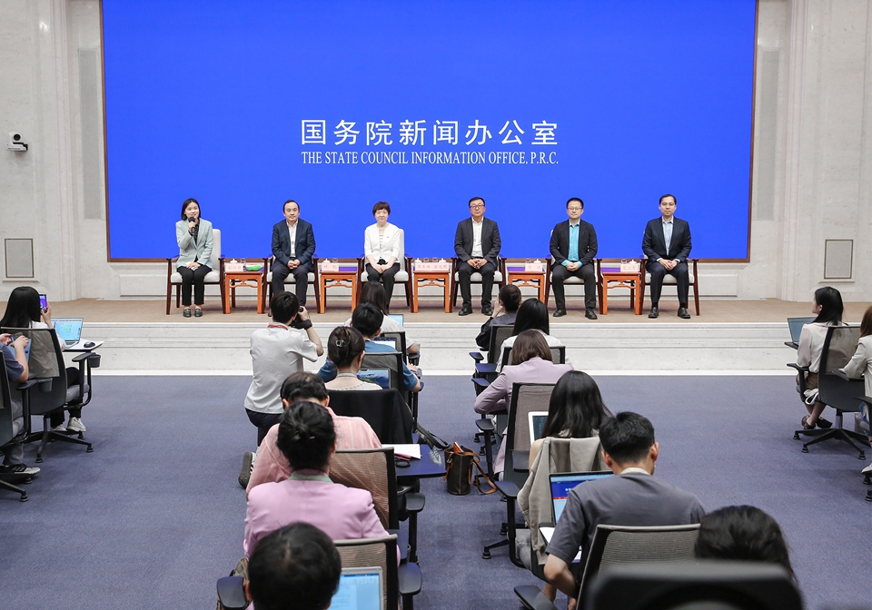 On May 28, 2025, the State Council Information Office invites five representatives in the science and technology field to meet journalists and answer questions in Beijing. [Photo by Liu Jian/China SCIO]