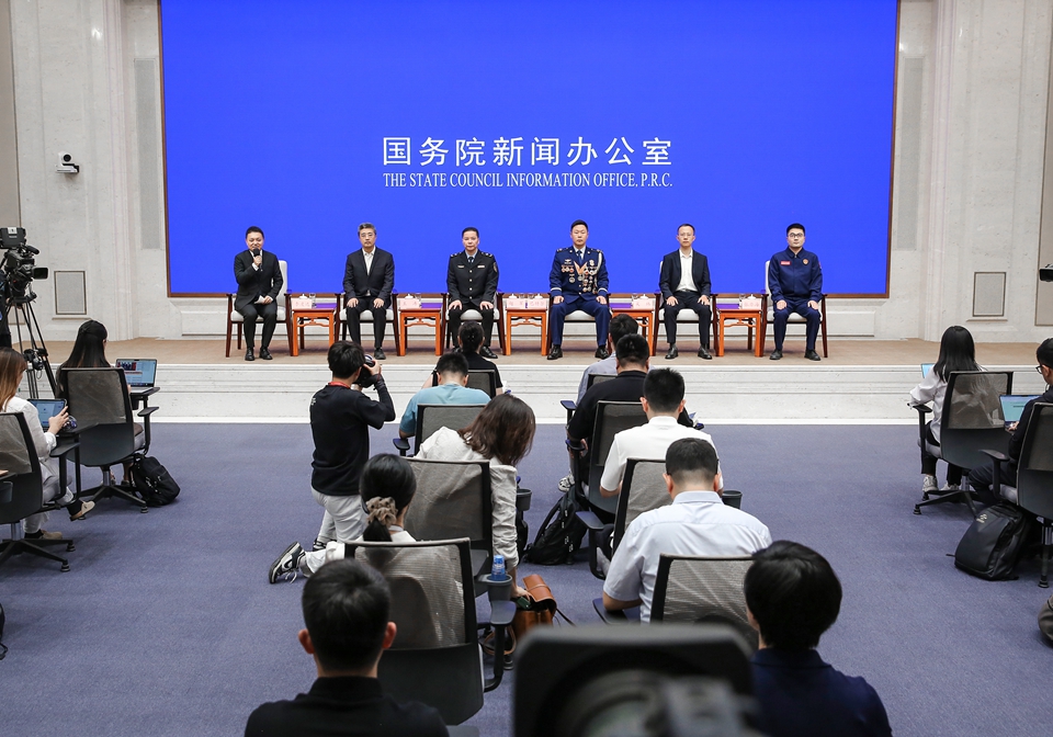 On June 12, 2025, the State Council Information Office invites five emergency management representatives to meet journalists and answer questions in Beijing. [Photo by Zhang Xin/China SCIO]