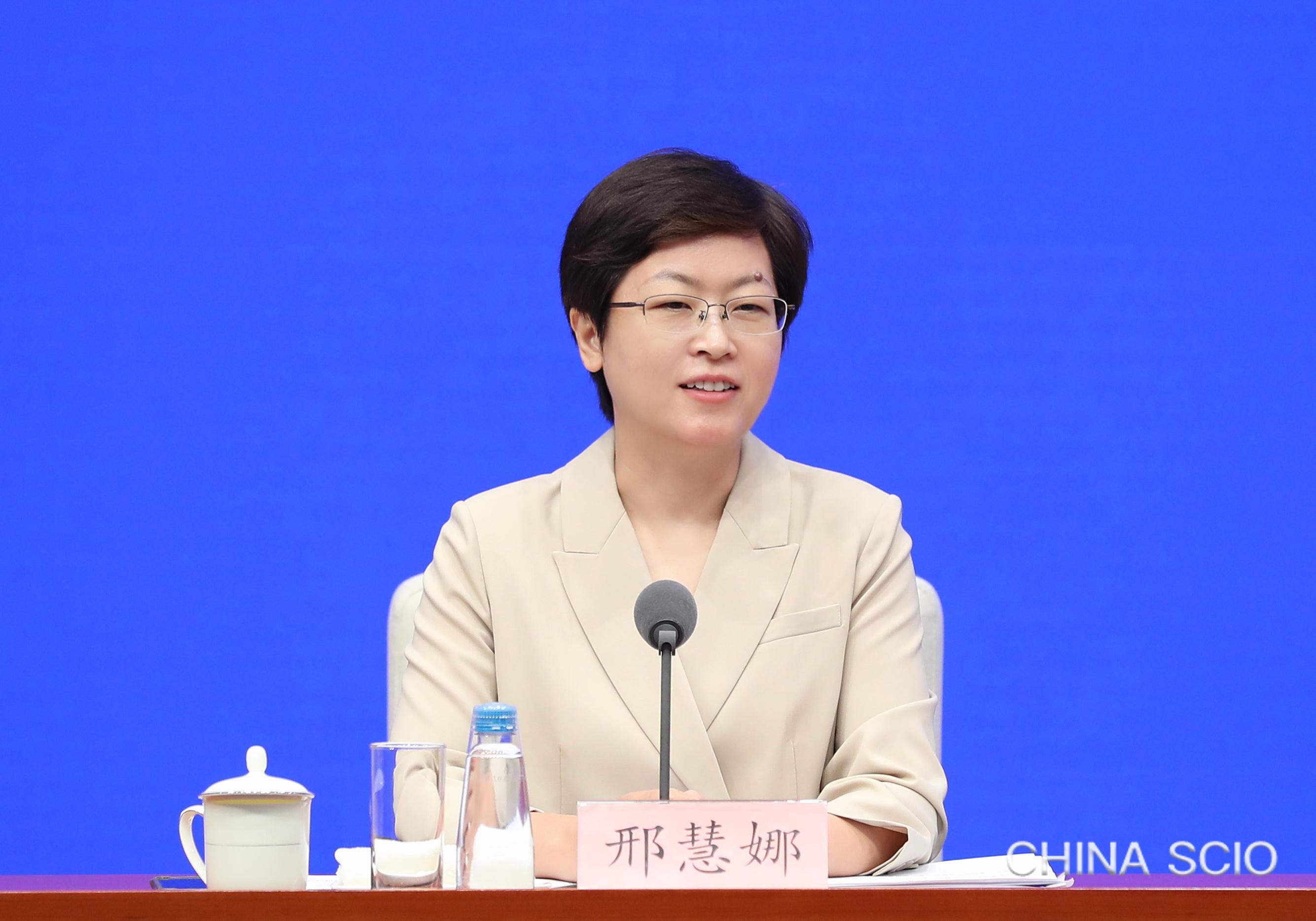 Xing Huina, deputy director general of the Press Bureau of the State Council Information Office (SCIO) and spokesperson of the SCIO, chairs a press conference in Beijing, June 17, 2025. [Photo by Luan Haijun/China SCIO]