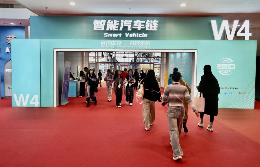 This photo shows the smart vehicle exhibition area at the second China International Supply Chain Expo (CISCE) in Beijing, capital of China, Nov. 28, 2024. (Xinhua/Xiao Ennan)