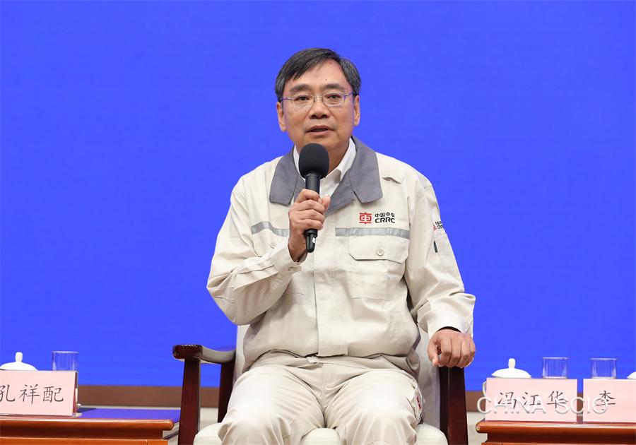Feng Jianghua, chief scientist of CRRC Corporation Limited, attends a group interview in Beijing, June 19, 2025. [Photo by Xu Xiang/China SCIO]