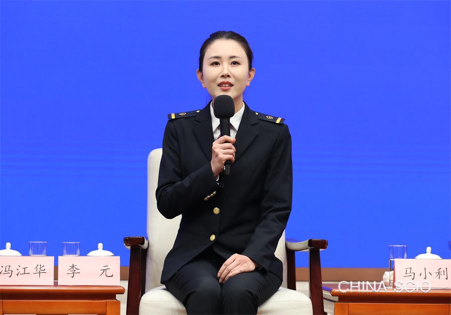 Li Yuan, service team leader at Shenzhen North Station of China Railway Guangzhou Group Co. Ltd., attends a group interview in Beijing, June 19, 2025. [Photo by Xu Xiang/China SCIO]