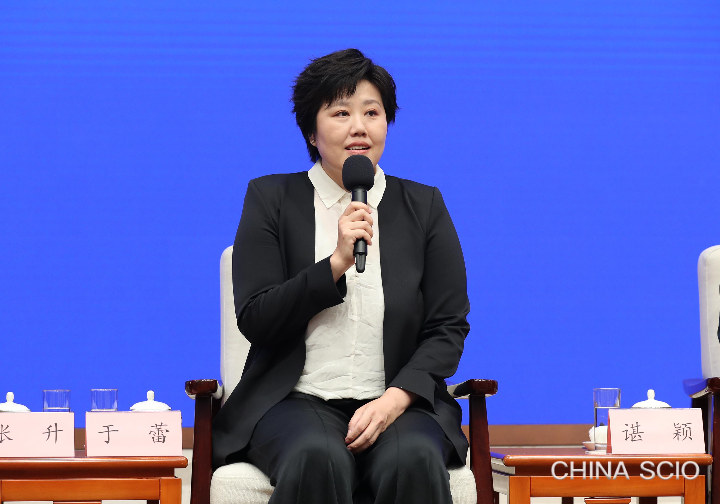 Yu Lei, deputy head of the Cultural and Entertainment Program Center of China Media Group, attends a group interview in Beijing, June 20, 2025. [Photo by Xu Xiang/China SCIO]