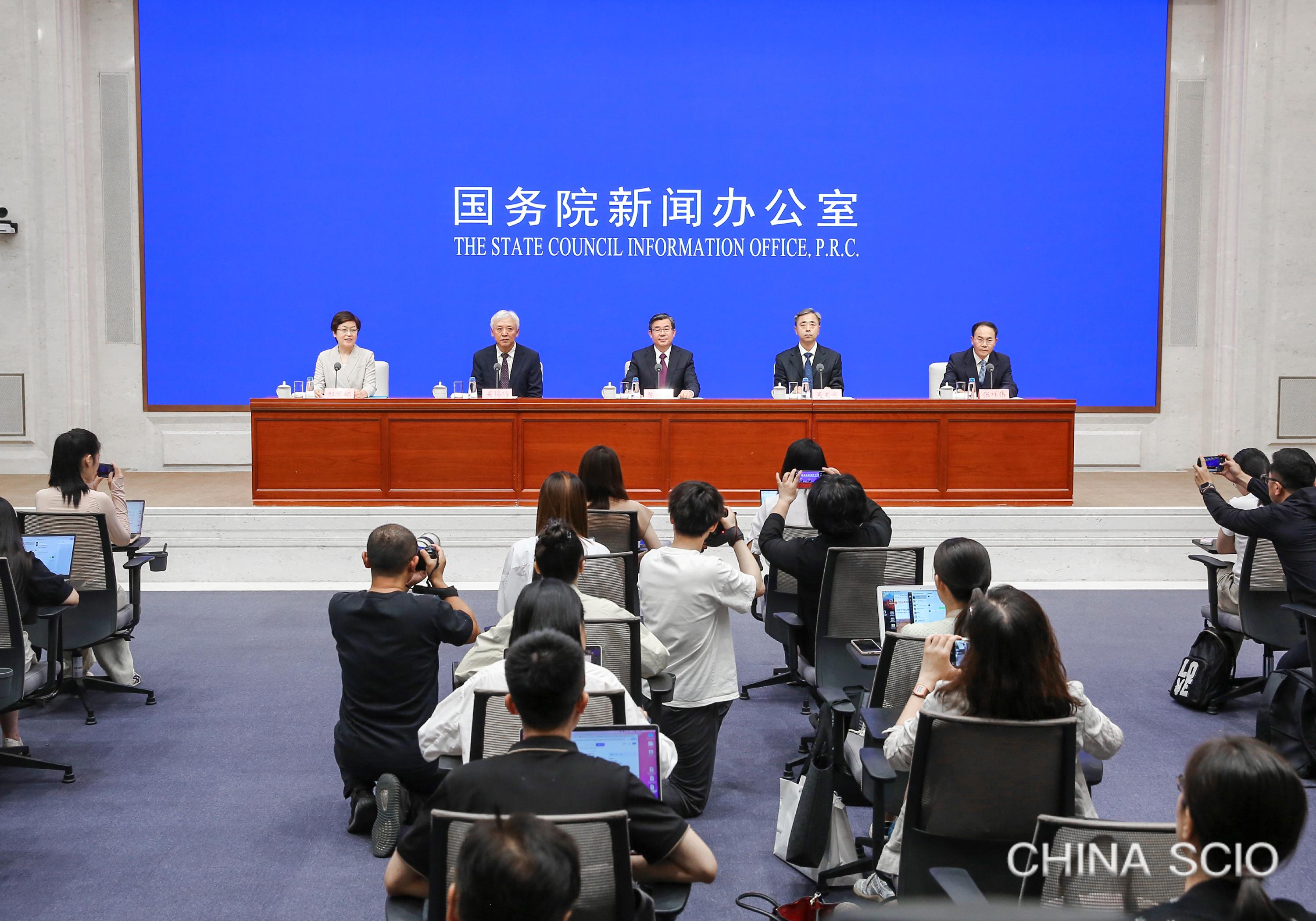 On July 4, 2025, the State Council Information Office holds a press conference in Beijing on promoting comprehensive river protection and management. [Photo by Liu Jian/China SCIO]