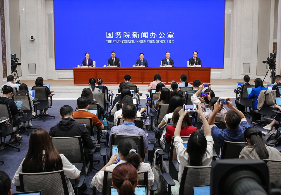 On July 9, 2025, the State Council Information Office holds a press conference in Beijing on China's economic and social achievements during the 14th Five-Year Plan period. [Photo by Liu Jian/China SCIO]