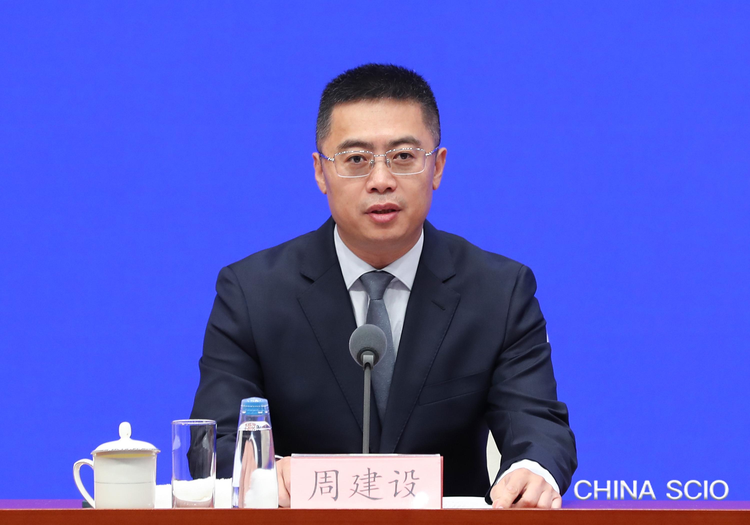 Zhou Jianshe, deputy director general of the Press Bureau of the State Council Information Office (SCIO) and spokesperson of the SCIO, chairs a press conference in Beijing, July 14, 2025. [Photo by Luan Haijun/China SCIO]