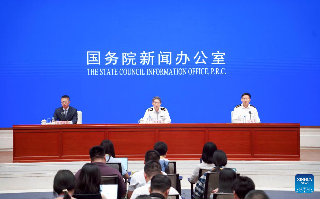 The State Council Information Office holds a press conference on China's import and export in the first half (H1) of 2025 in Beijing, capital of China, July 14, 2025. (Xinhua/Pan Xu)