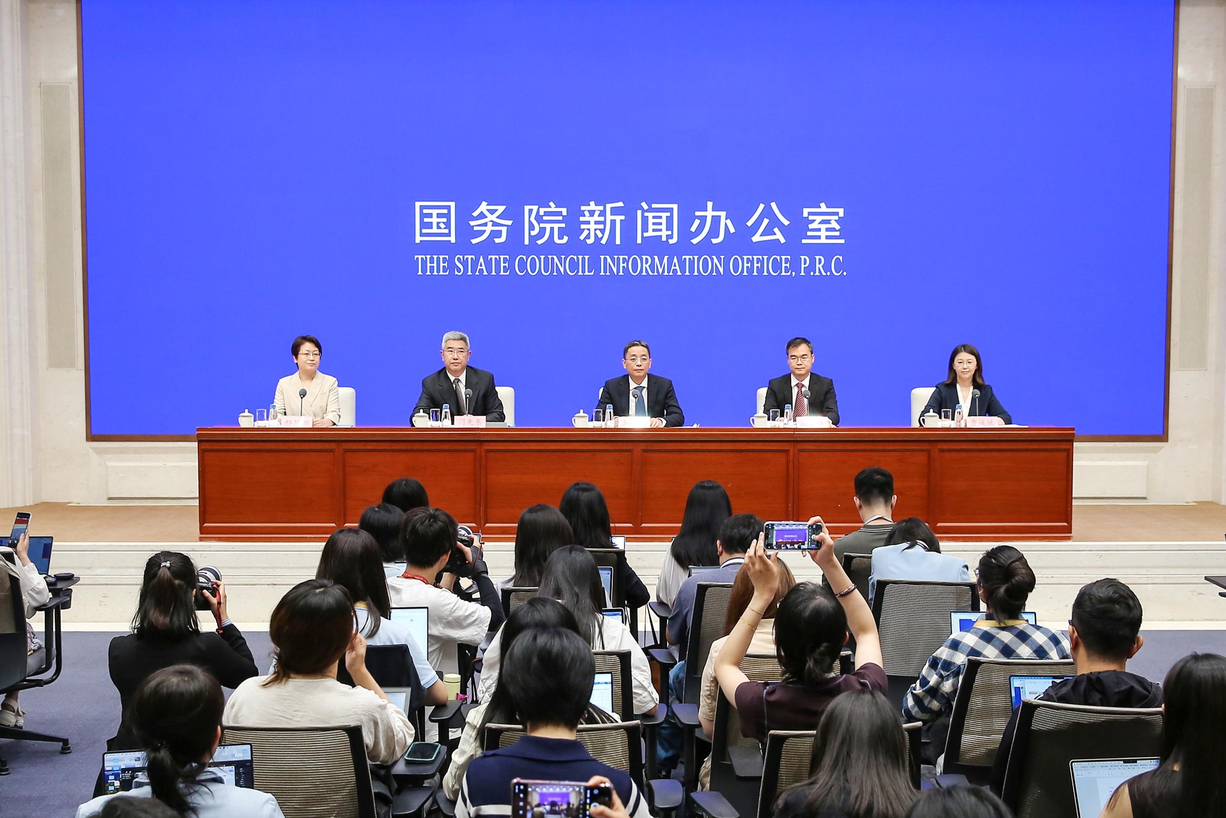 Xing Huina, deputy director general of the Press Bureau of the State Council Information Office (SCIO) and spokesperson of the SCIO, chairs a press conference in Beijing, July 14, 2025. [Photo by Luan Haijun/China SCIO]