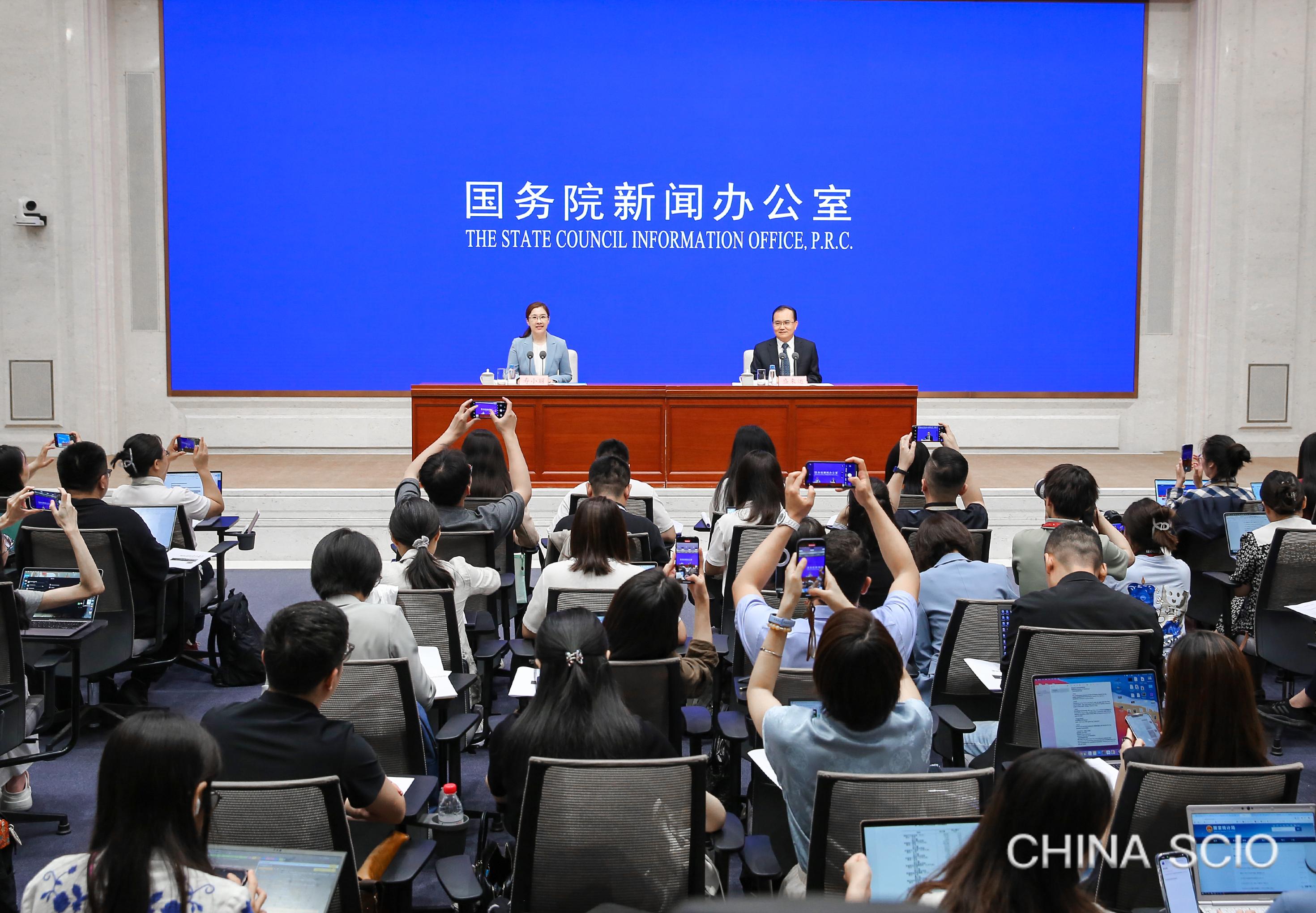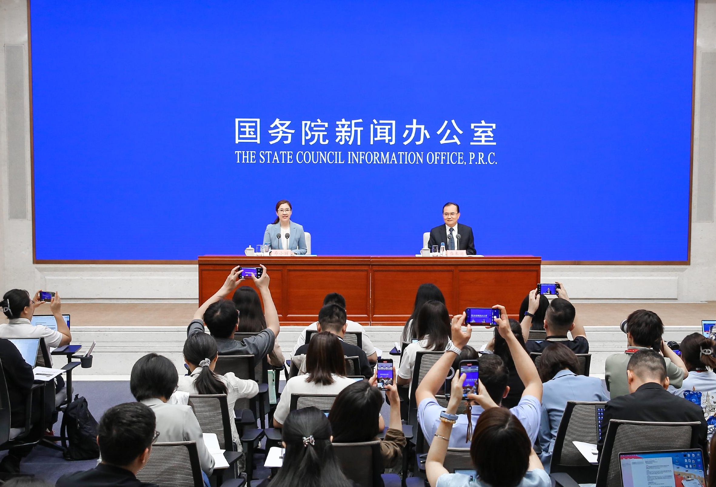 On July 15, 2025, the State Council Information Office holds a press conference in Beijing on China's economic performance of the first half of 2025. [Photo by Liu Jian/China SCIO]