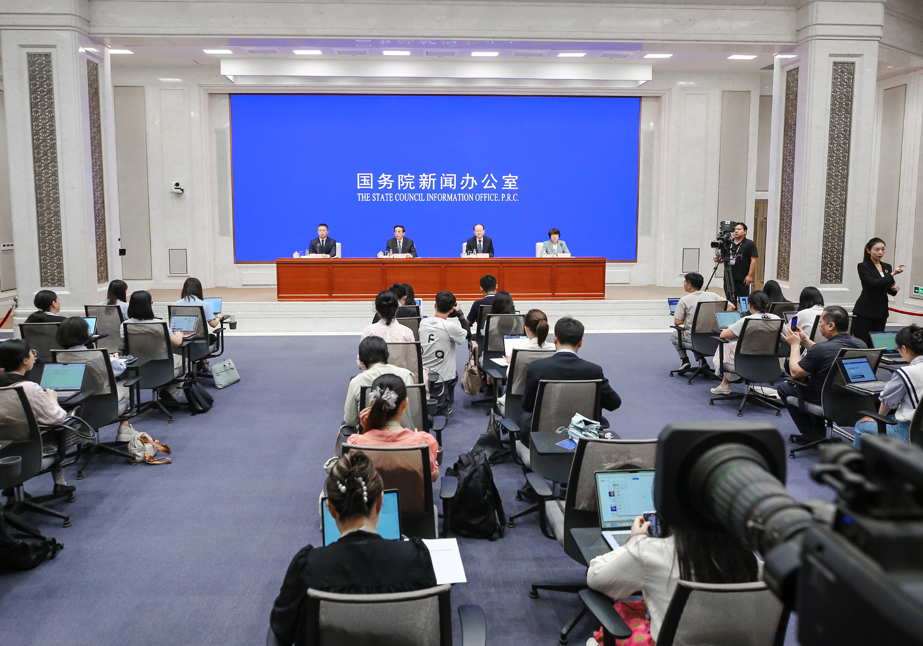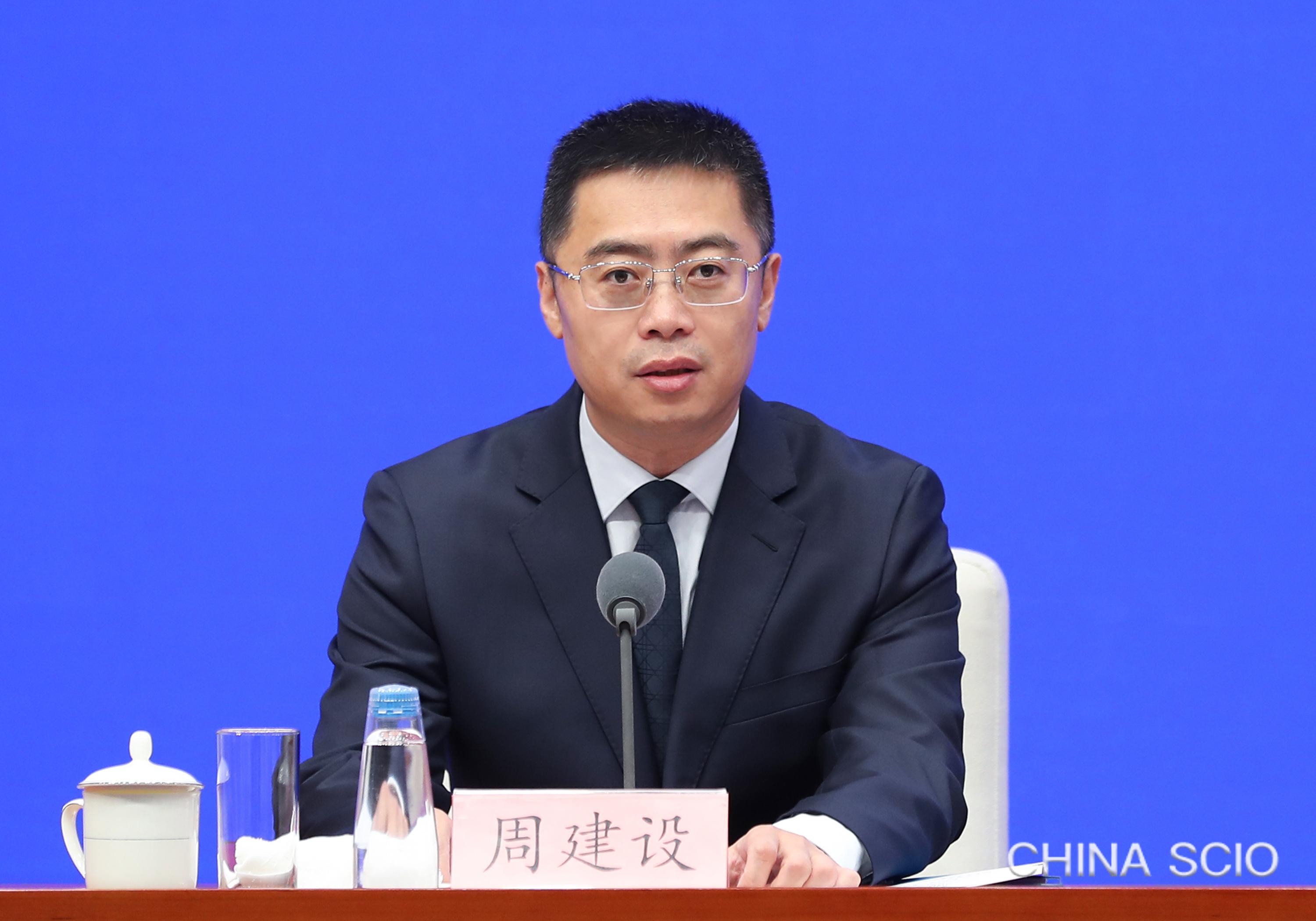Zhou Jianshe, deputy director general of the Press Bureau of the State Council Information Office (SCIO) and spokesperson of the SCIO, chairs a press conference in Beijing, July 22, 2025. [Photo by Liu Jian/China SCIO]