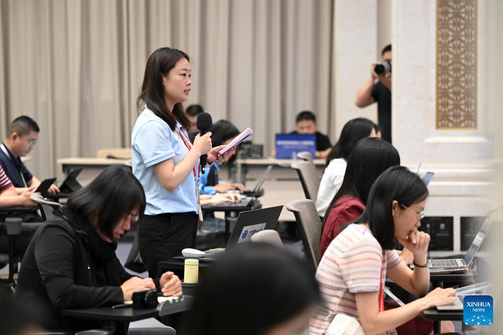 A journalist asks questions at a press conference held by the State Council Information Office (SCIO) in Beijing, capital of China, July 28, 2025.