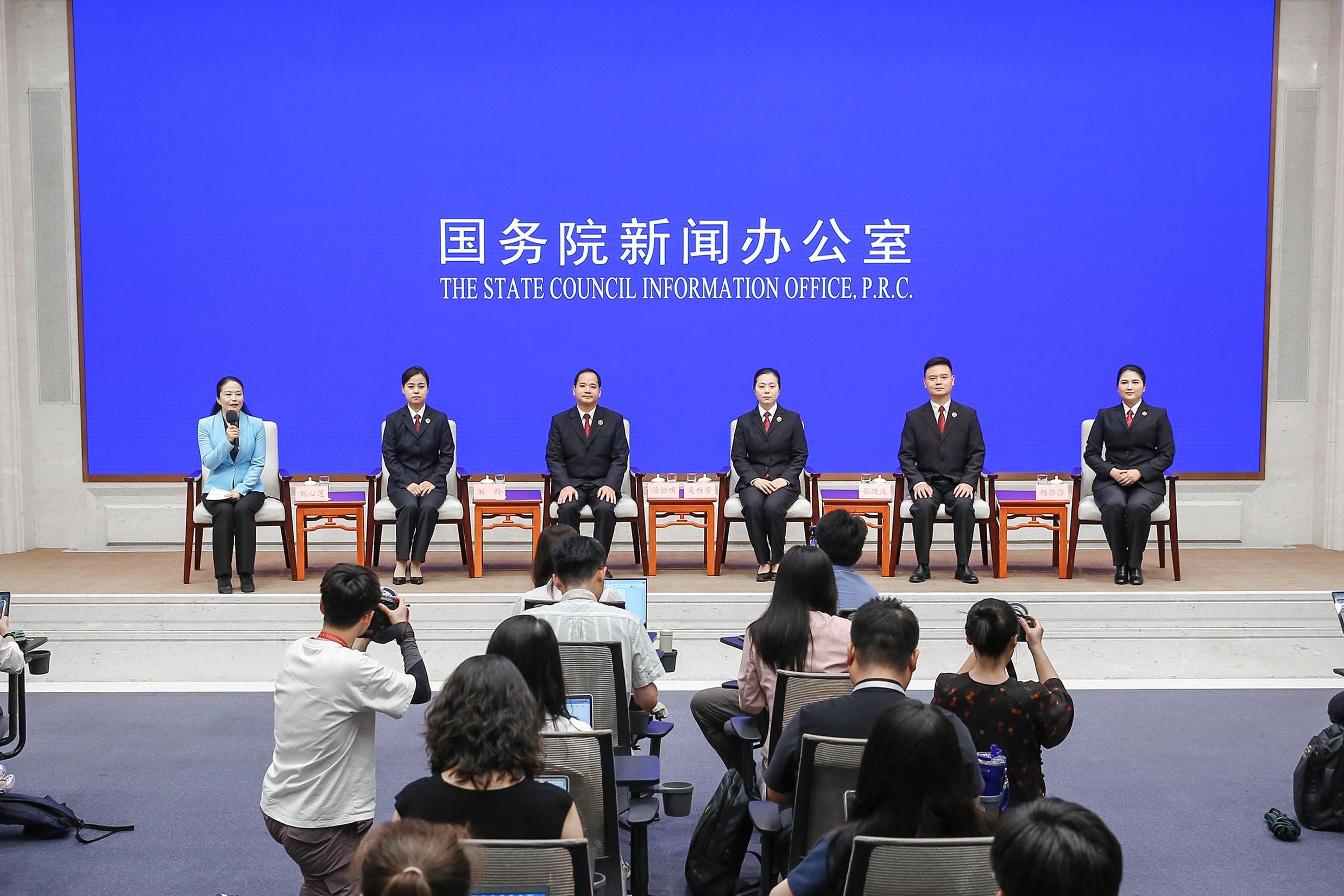 On July 29, 2025, the State Council Information Office invites five prosecutor representatives to meet journalists and answer questions in Beijing. [Photo by Liu Jian/China SCIO]