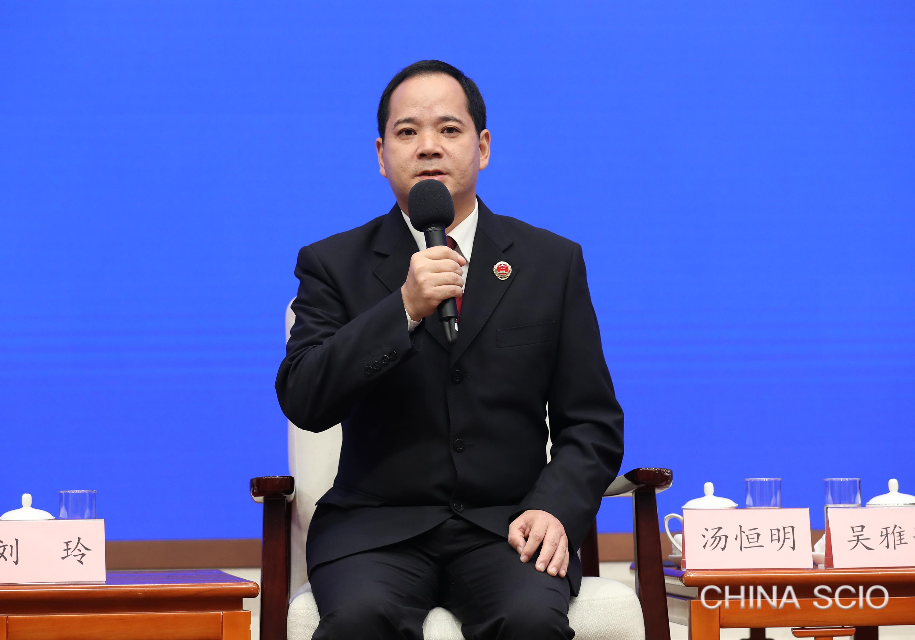 Tang Hengming, class I prosecutor of the People's Procuratorate of Jinghu District, Wuhu City, Anhui Province, attends a group interview in Beijing, July 29, 2025. [Photo by Xu Xiang/China SCIO]