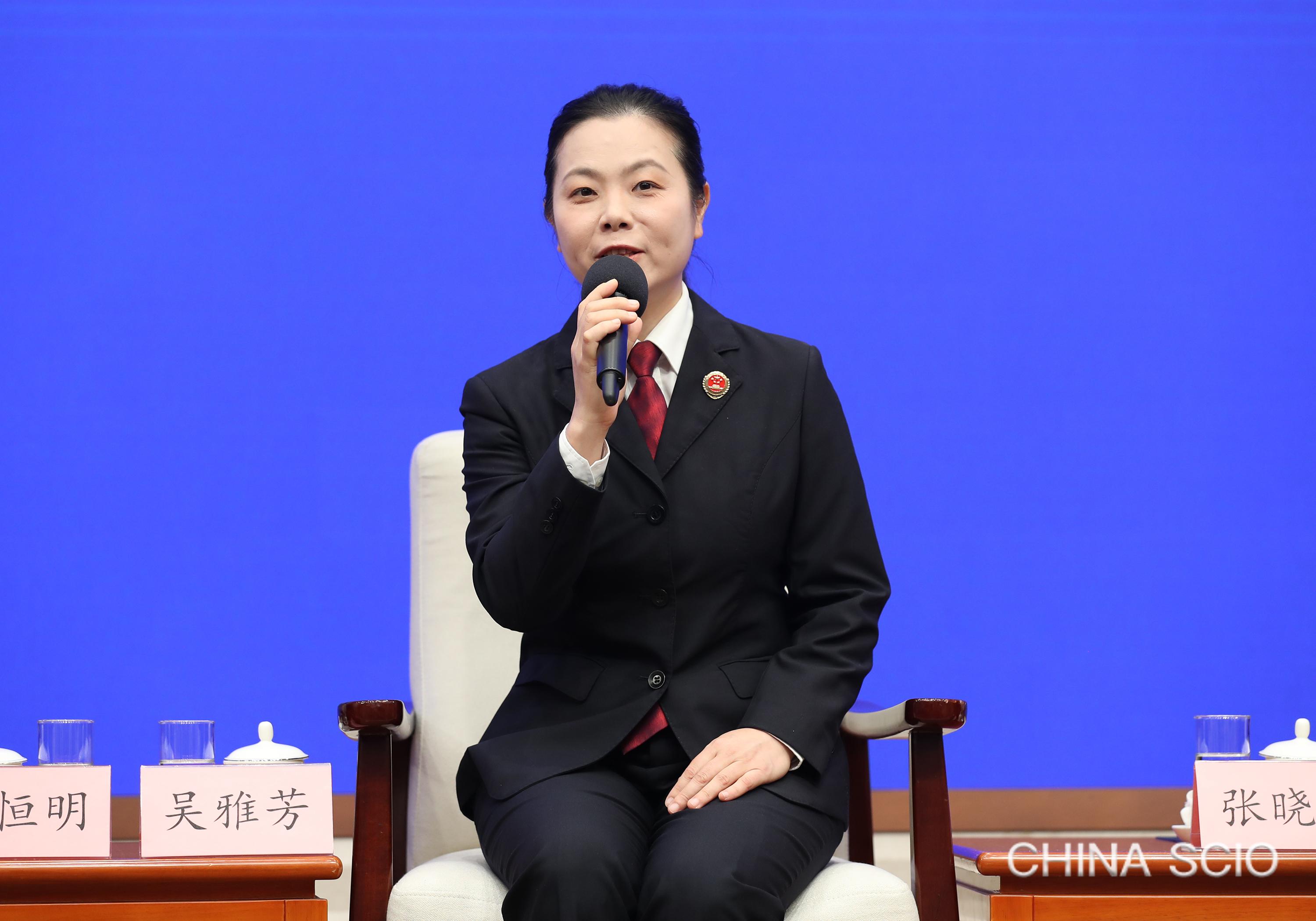Wu Yafang, class IV senior prosecutor of the People's Procuratorate of Jinjiang City, Fujian Province, attends a group interview in Beijing, July 29, 2025. [Photo by Xu Xiang/China SCIO]
