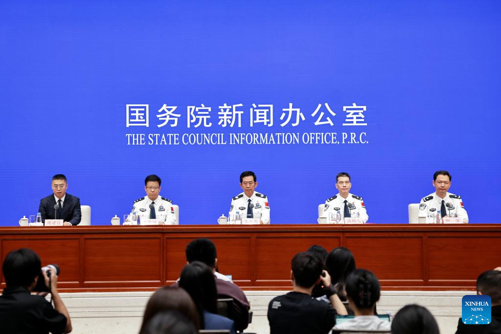 Wang Zhizhong, vice minister of public security and head of the National Immigration Administration, attends a press conference held by the State Council Information Office (SCIO) on China's immigration management achievements during the 14th Five-Year Plan period (2021-2025) in Beijing, capital of China, July 30, 2025. (Xinhua/Zhang Yuwei)