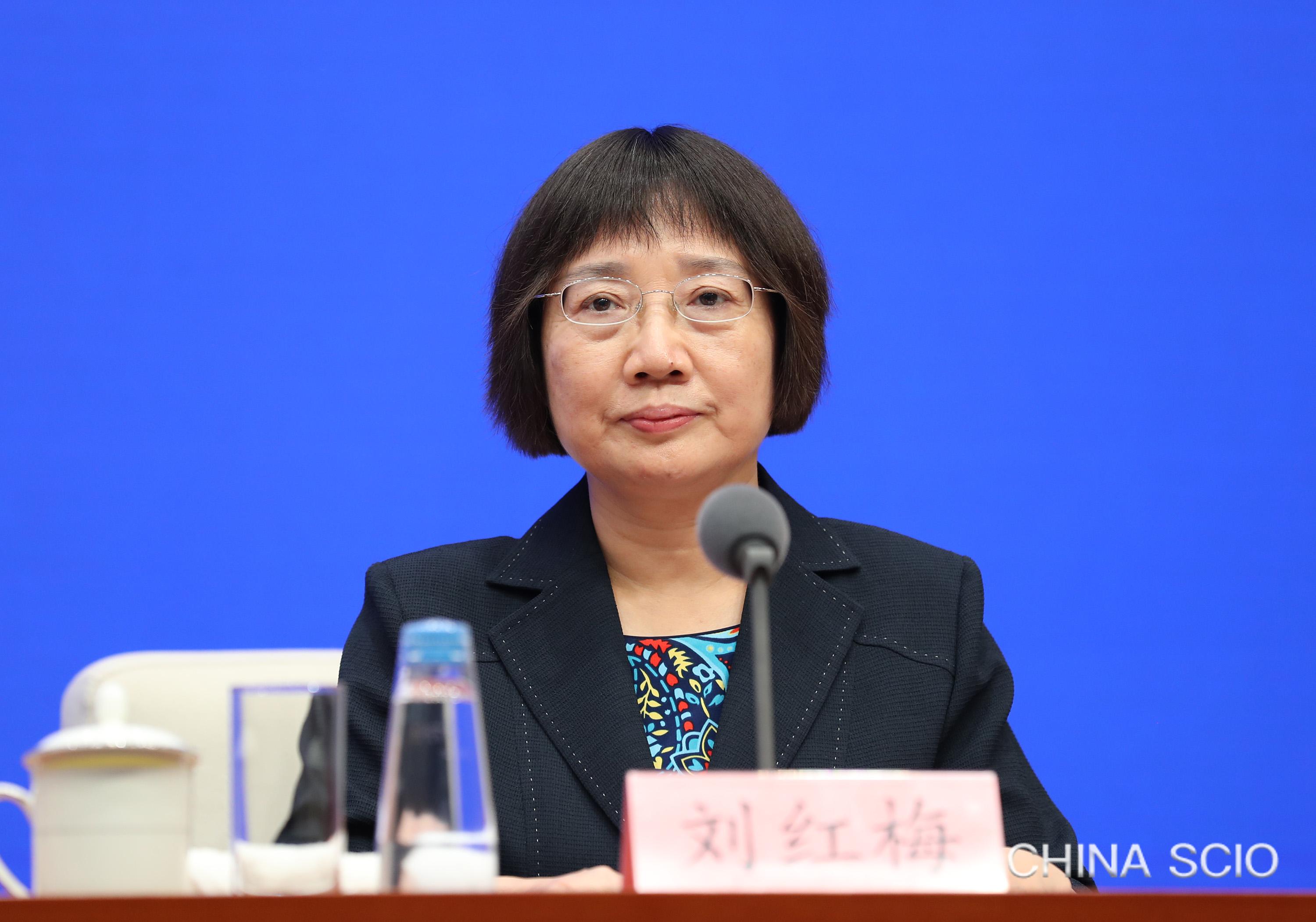 Liu Hongmei, director general of the Department of Female Employees of the All-China Federation of Trade Unions, attends a press conference in Beijing, July 30, 2025. [Photo by Xu Xiang/China SCIO]