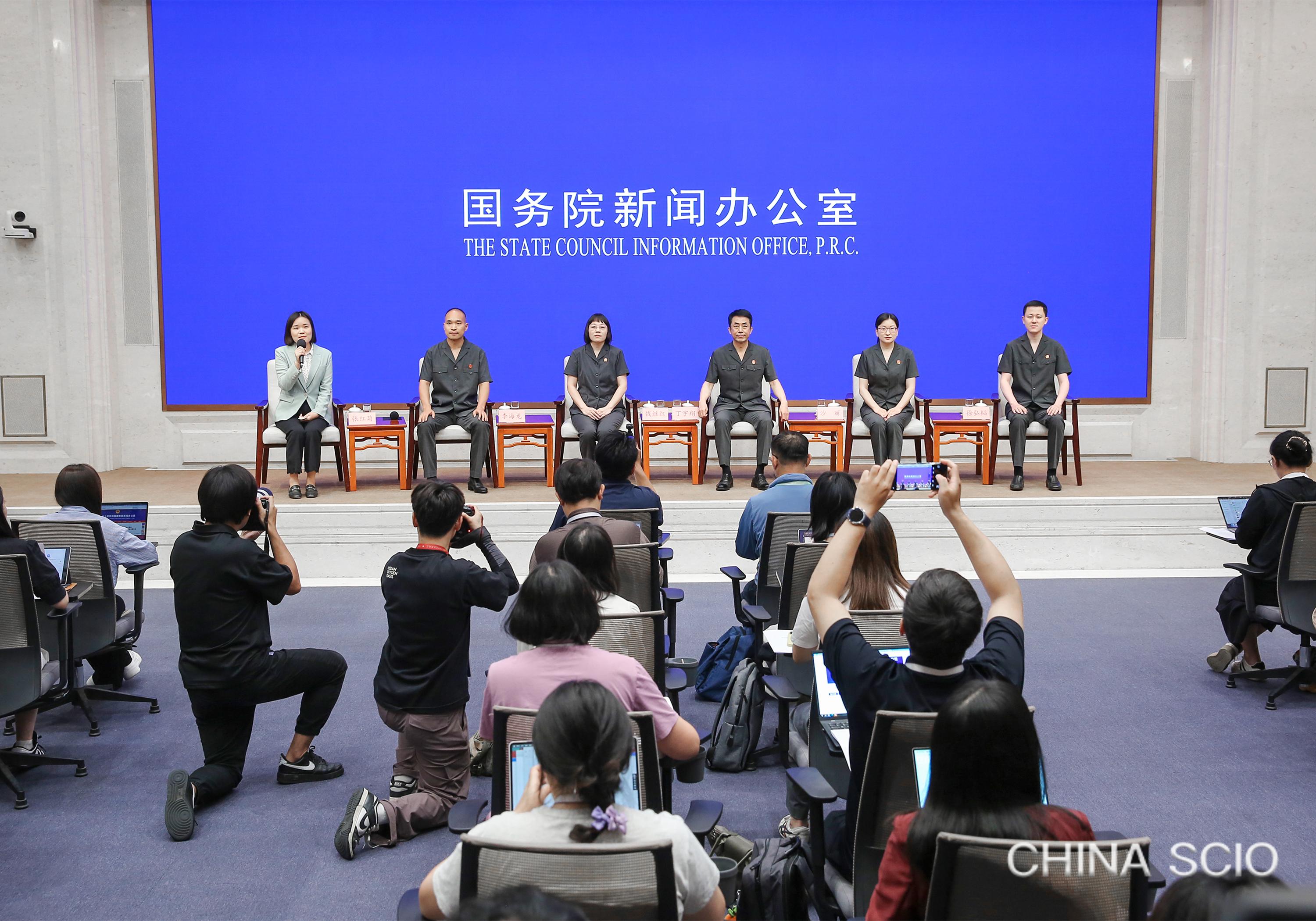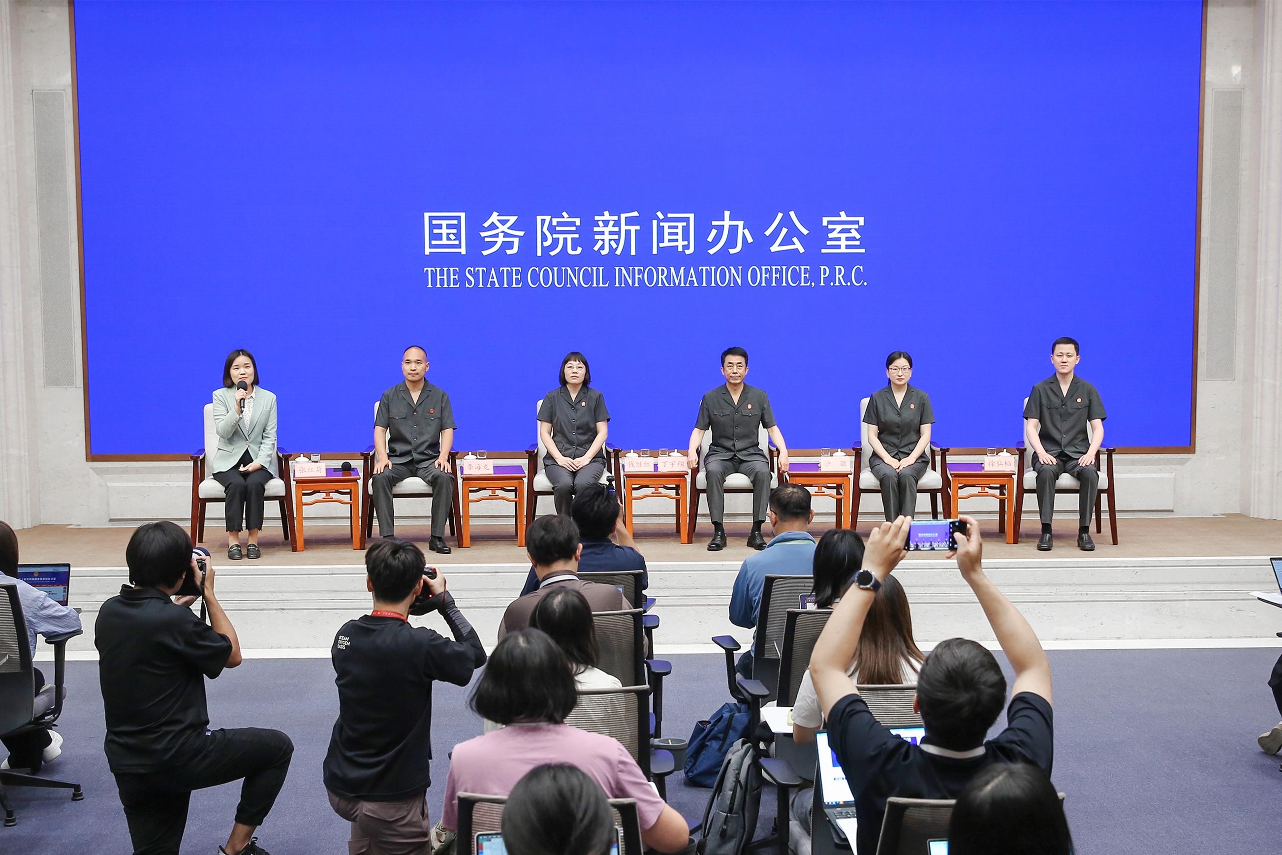 On July 30, 2025, the State Council Information Office holds a group interview in Beijing, inviting representatives of the court system to meet journalists and answer questions. [Photo by Liu Jian/China SCIO]