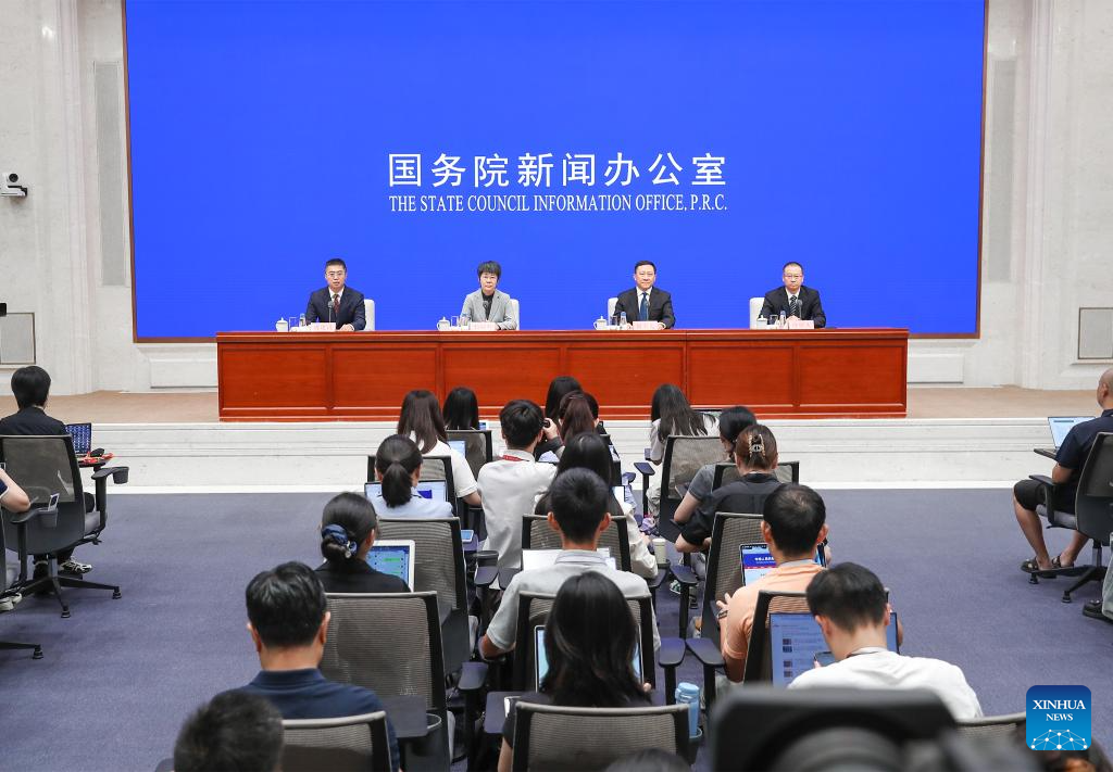 The State Council Information Office (SCIO) holds a policy briefing on promoting free preschool education in a phased way, in Beijing, capital of China, Aug. 7, 2025. (Photo by Liu Jian/Xinhua)