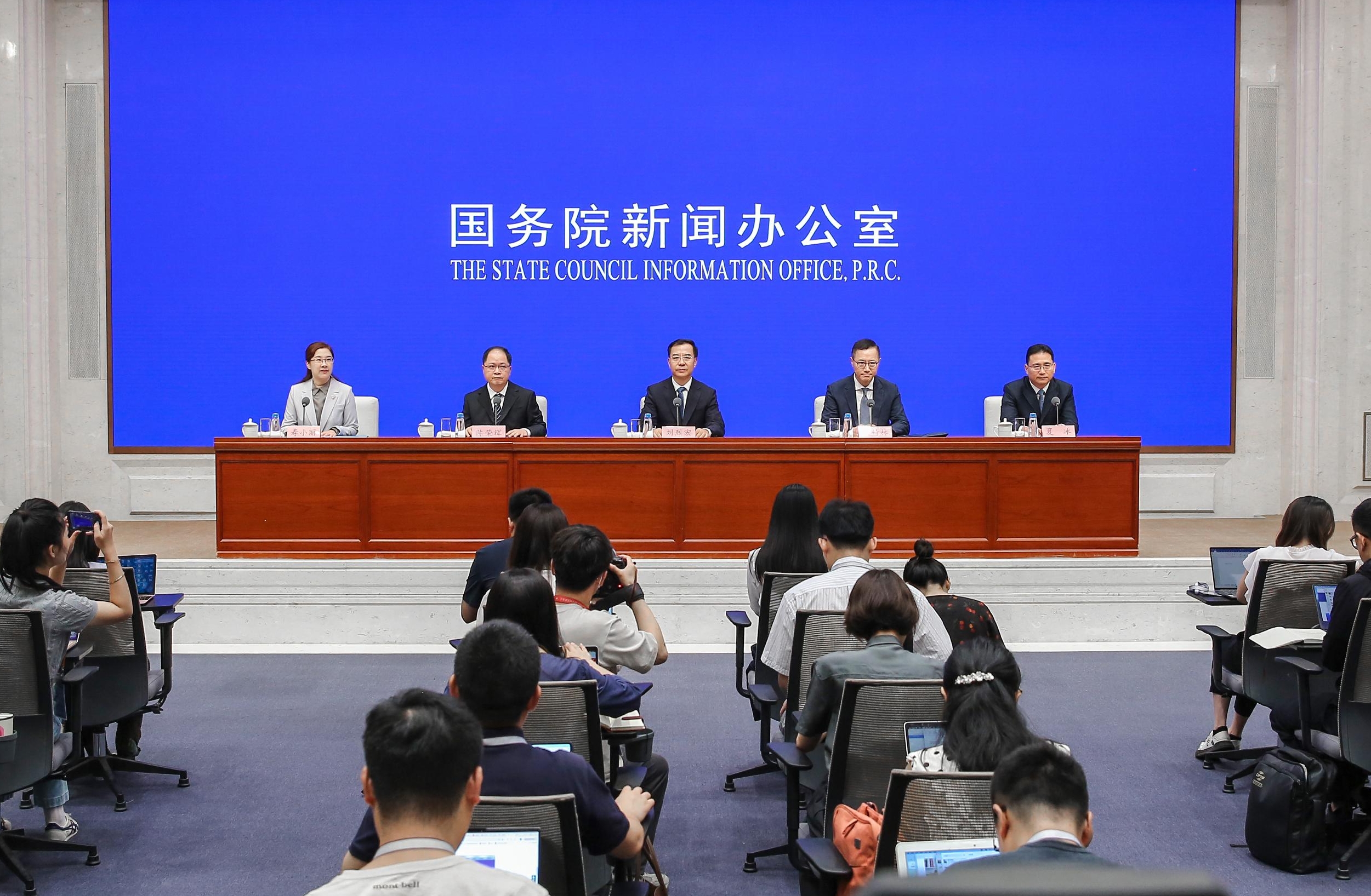 On Aug. 14, 2025, the State Council Information Office holds a press conference in Beijing on achievements in Digital China development during the 14th Five-Year Plan period (2021-2025). [Photo by Zhang Xin/China SCIO]