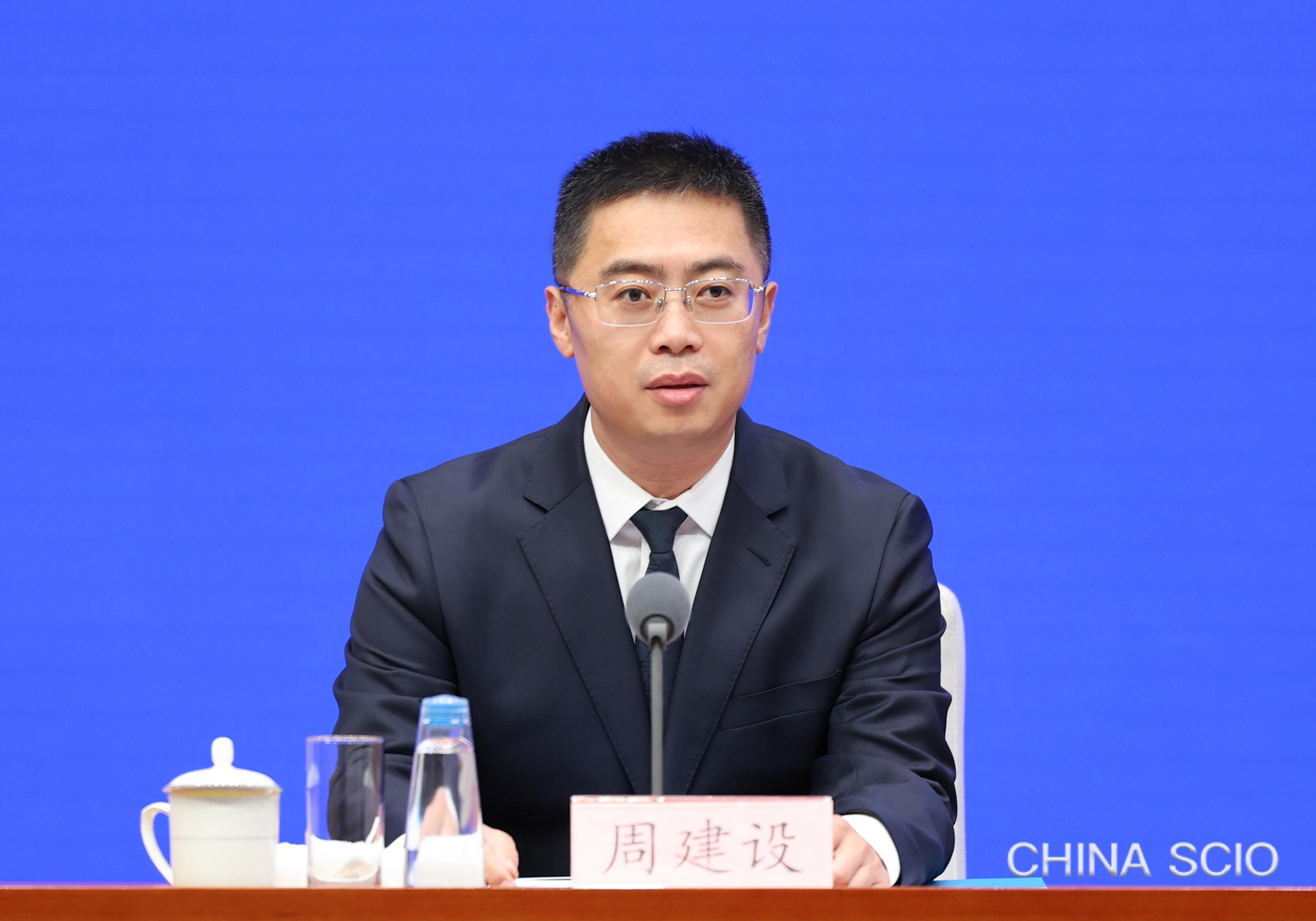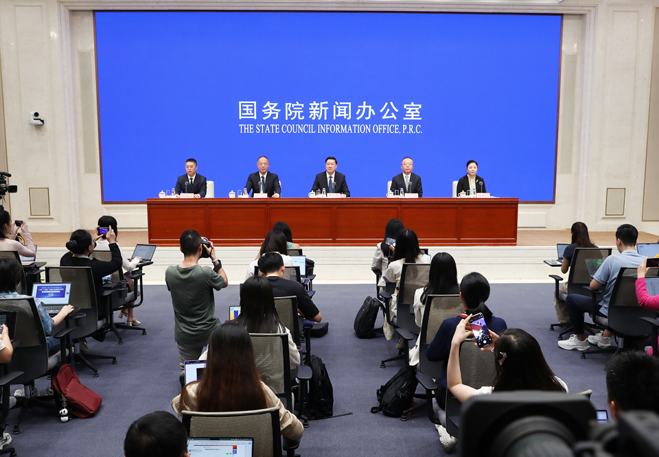 Zhou Jianshe, deputy director general of the Press Bureau of the State Council Information Office (SCIO) and spokesperson of the SCIO, chairs a press conference in Beijing, Aug. 19, 2025. [Photo by Luan Haijun/China SCIO]