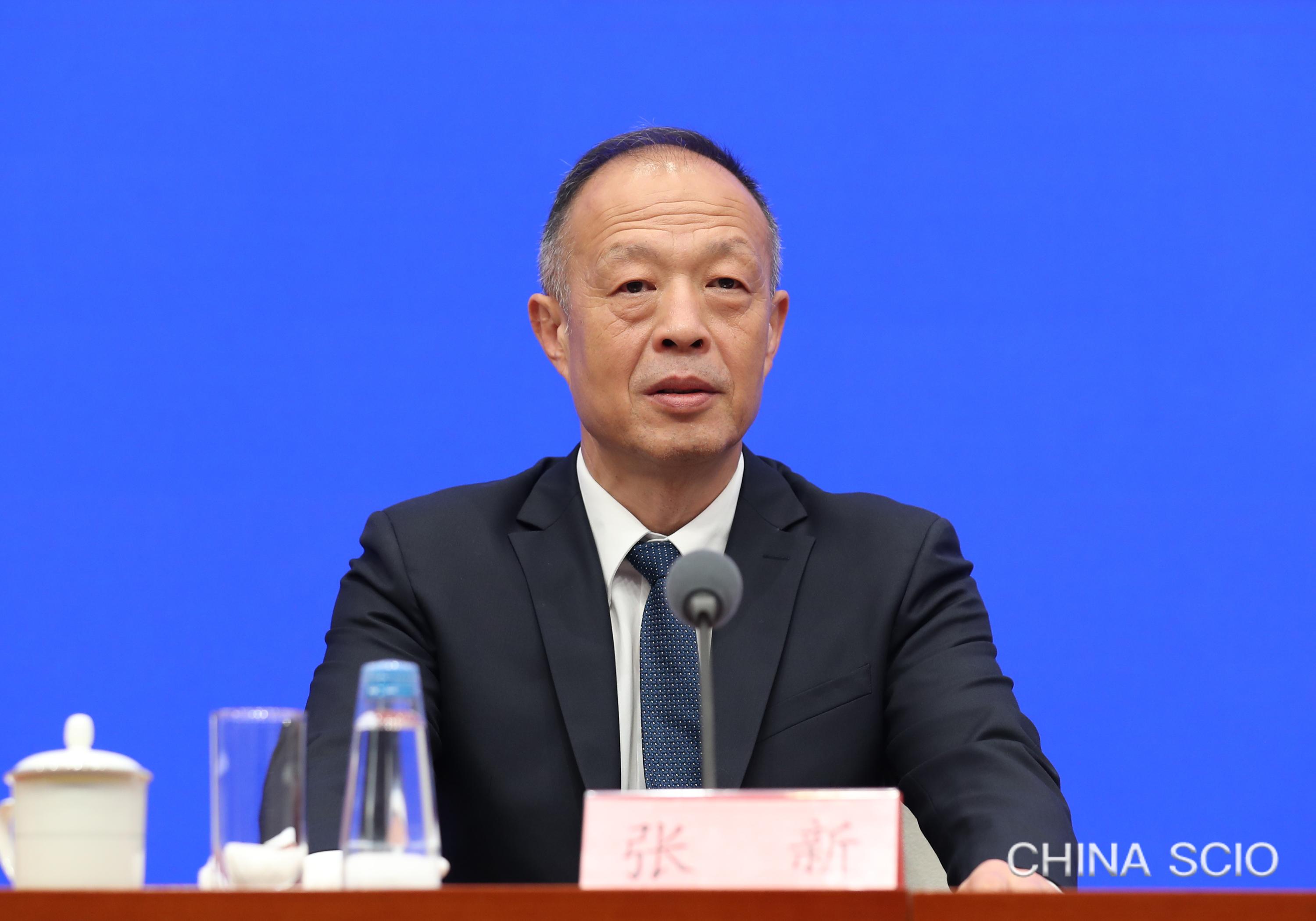 Zhang Xin, director general of the Competitive Sports Department of the General Administration of Sport of China, attends a press conference in Beijing, Aug. 19, 2025. [Photo by Liu Jian/China SCIO]