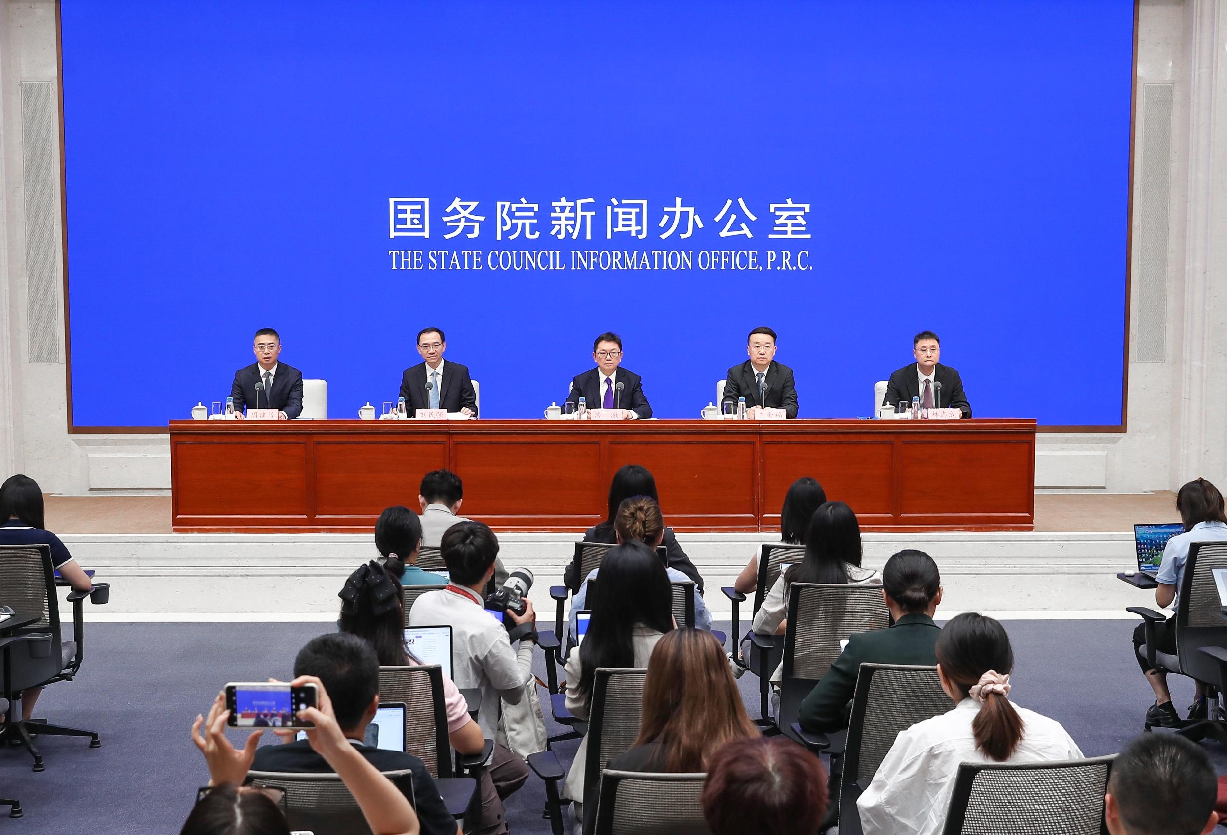 Zhou Jianshe, deputy director general of the Press Bureau of the State Council Information Office (SCIO) and spokesperson of the SCIO, chairs a press conference in Beijing, Aug. 26, 2025. [Photo by Luan Haijun/China SCIO]
