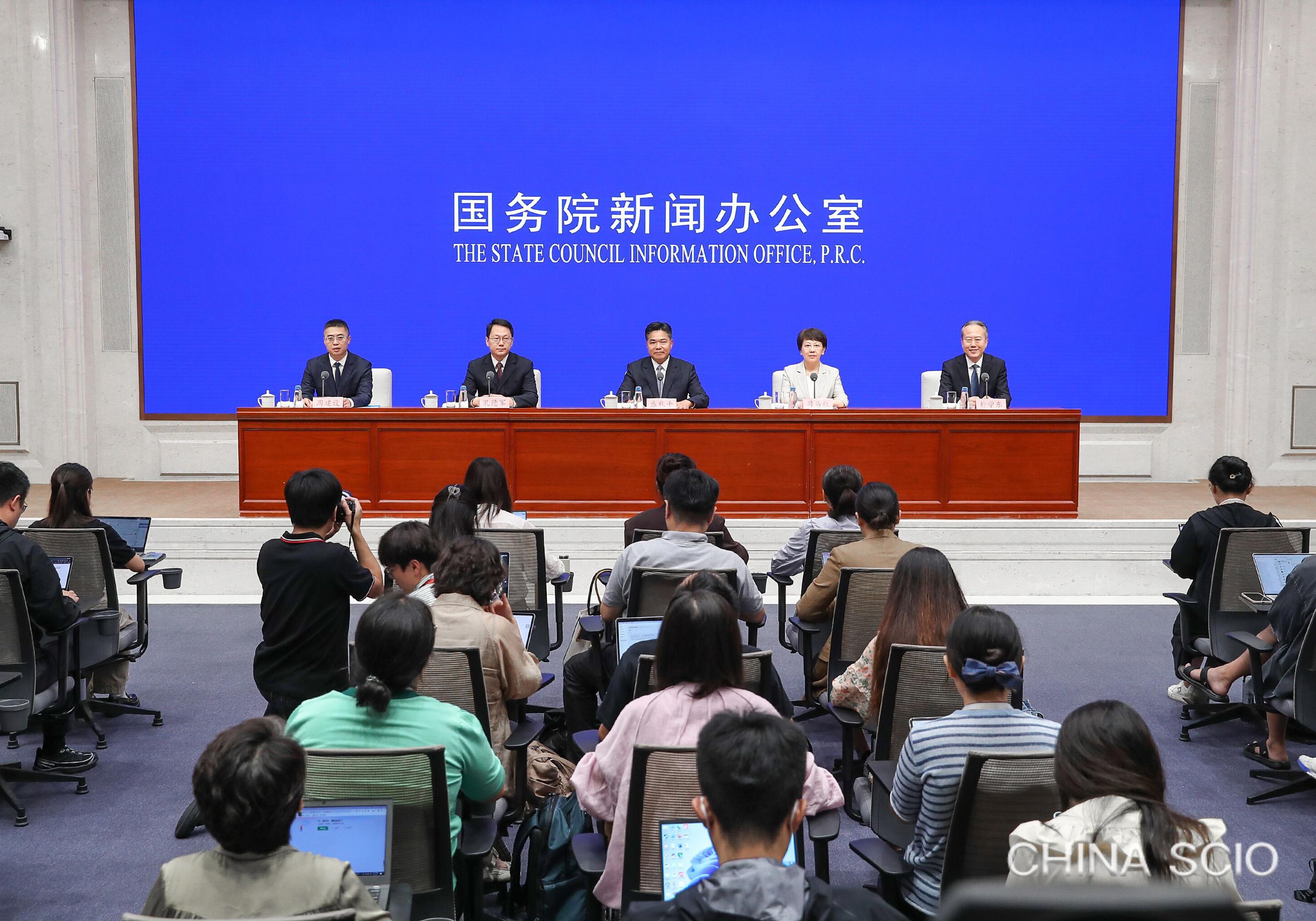 On Aug. 27, 2025, the State Council Information Office holds a press conference in Beijing on development of trade in services and preparations for the 2025 China International Fair for Trade in Services (CIFTIS). [Photo by Liu Jian/China SCIO]