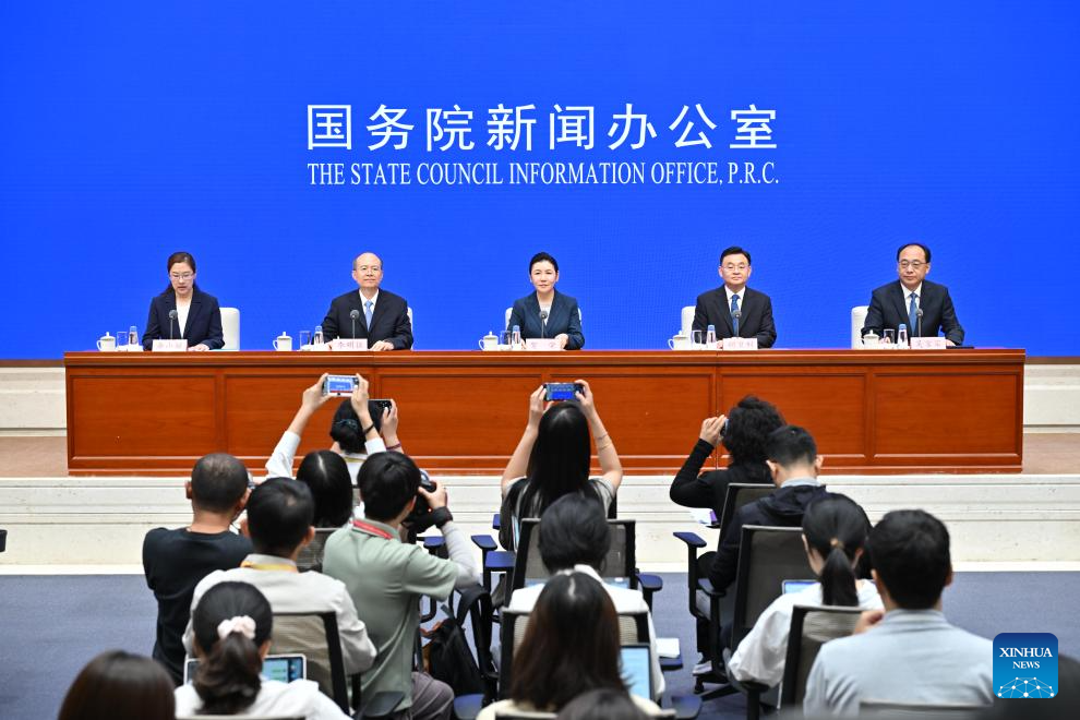 China's Minister of Justice He Rong attends a press conference held by the State Council Information Office (SCIO) on promoting socialist rule of law and judicial administration and serving high-quality development during the 14th Five-Year Plan period (2021-2025) in Beijing, capital of China, Sept. 8, 2025. (Xinhua/Li Xin)