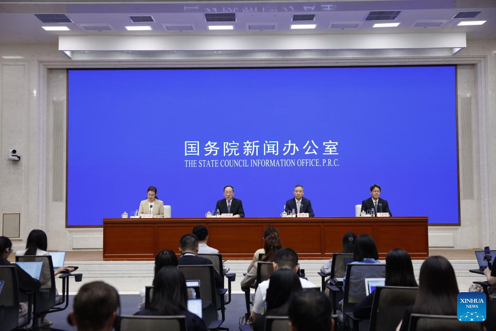 Li Lecheng, minister of industry and information technology, attends a press conference held by the State Council Information Office (SCIO) on vigorously promoting new industrialization and strengthening the foundation of the real economy during the 14th Five-Year Plan period (2021-2025) in Beijing, capital of China, Sept. 9, 2025. (Xinhua/Zhang Yuwei)