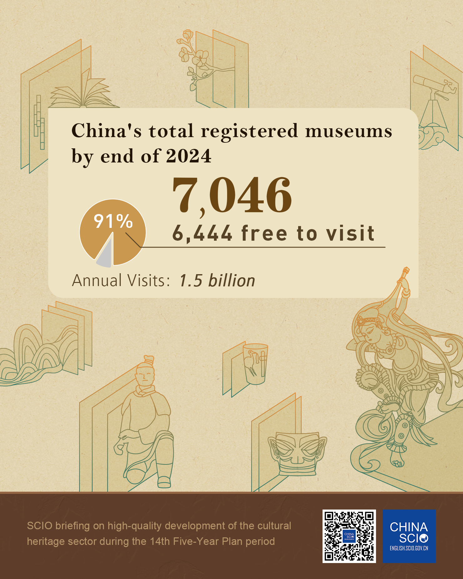 By the end of 2024, China had 7,046 registered museums ― averaging one for every 200,000 people ― with annual visits nearing 1.5 billion. Of these, 6,444 offered free admission, accounting for over 91%.