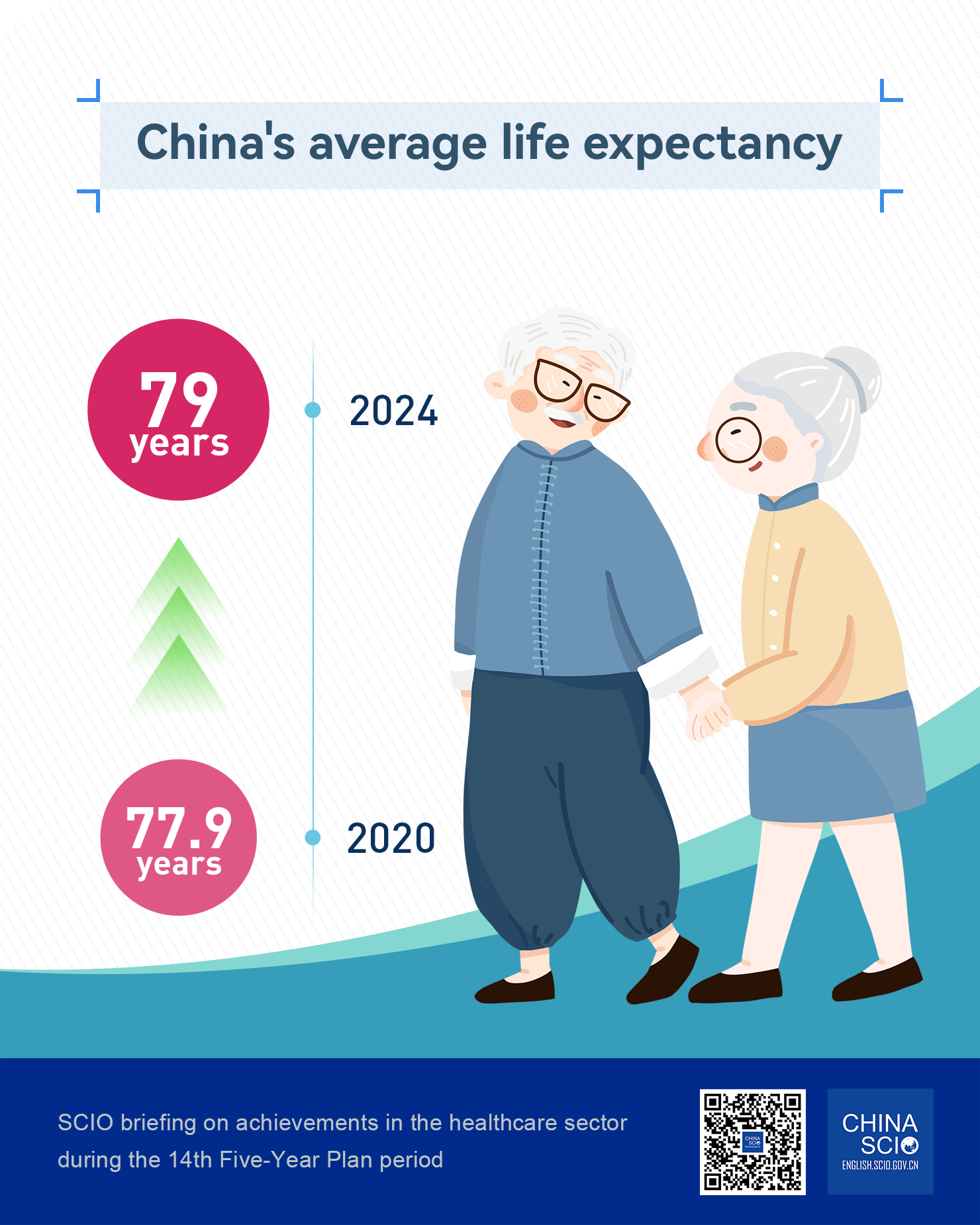 Over the past five years, China has achieved sustained improvements in public health. The average life expectancy rose to 79 years by the end of 2024, an increase of 1.1 years since 2020, said Lei Haichao, minister of the National Health Commission, at a press conference Thursday.