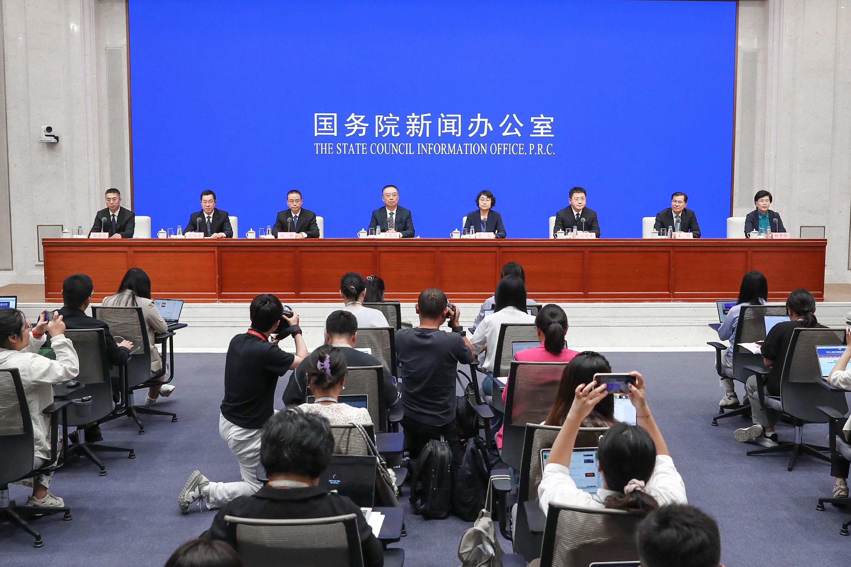 Zhou Jianshe, deputy director general of the Press Bureau of the State Council Information Office (SCIO) and spokesperson of the SCIO, chairs a policy briefing in Beijing, Sept. 11, 2025. [Photo by Luan Haijun/China SCIO]