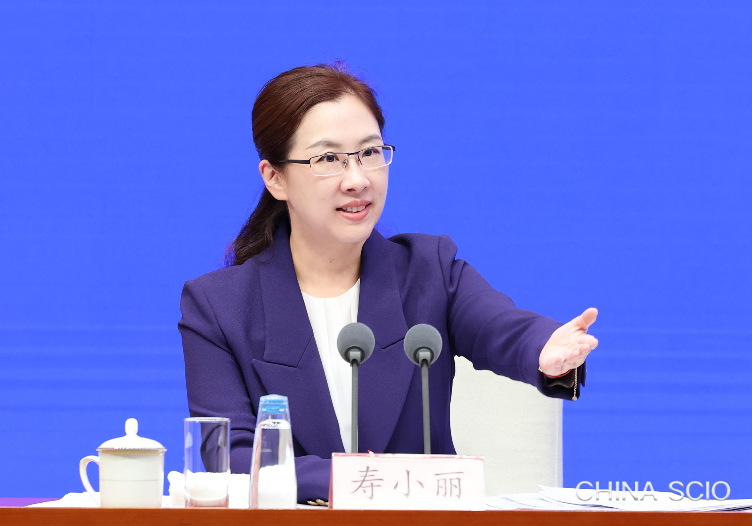Shou Xiaoli, director general of the Press Bureau of the State Council Information Office (SCIO) and spokesperson of the SCIO, invites journalists to raise questions at a press conference in Beijing, Sept. 19, 2025. [Photo by Luan Haijun/China SCIO]